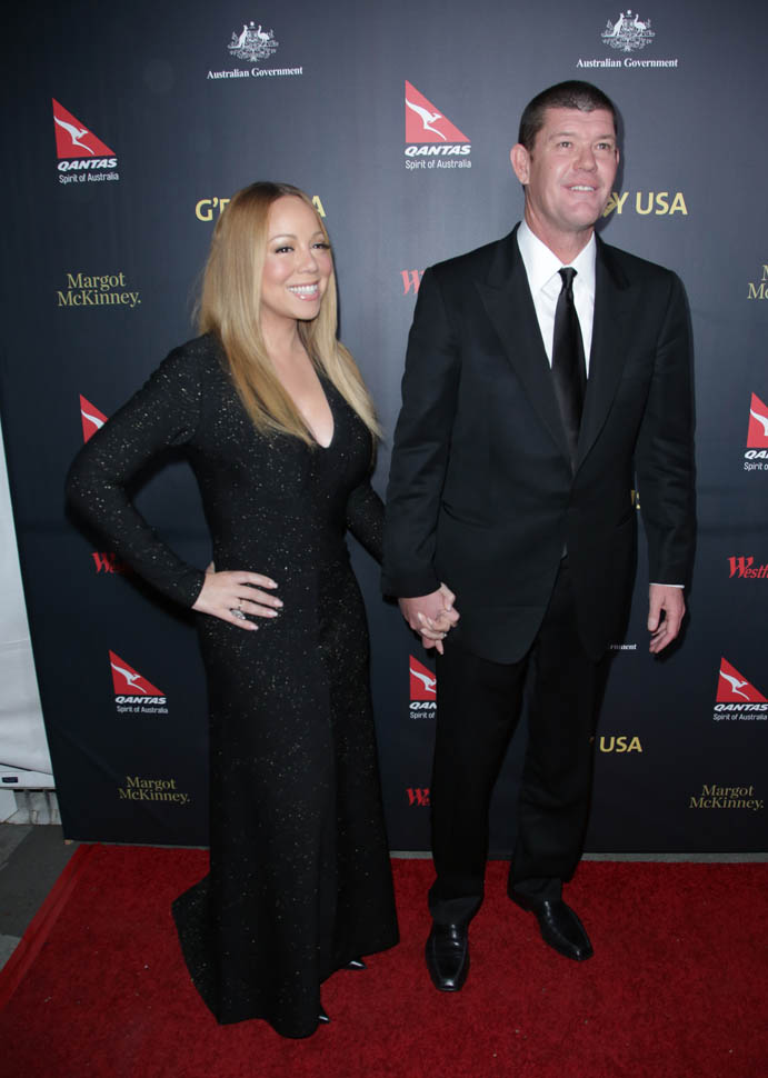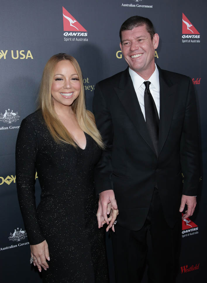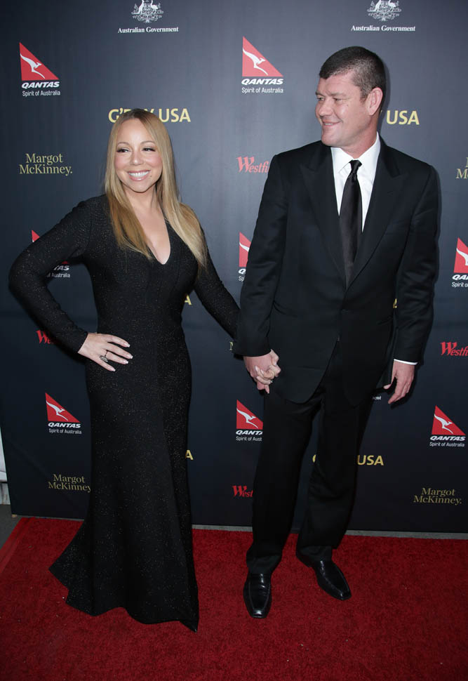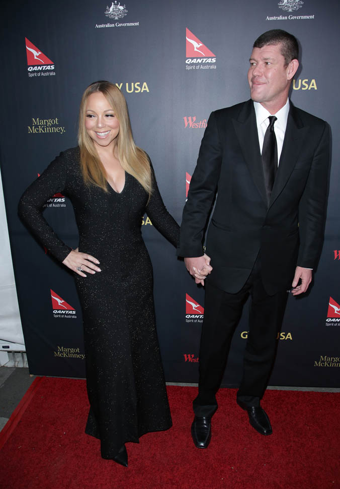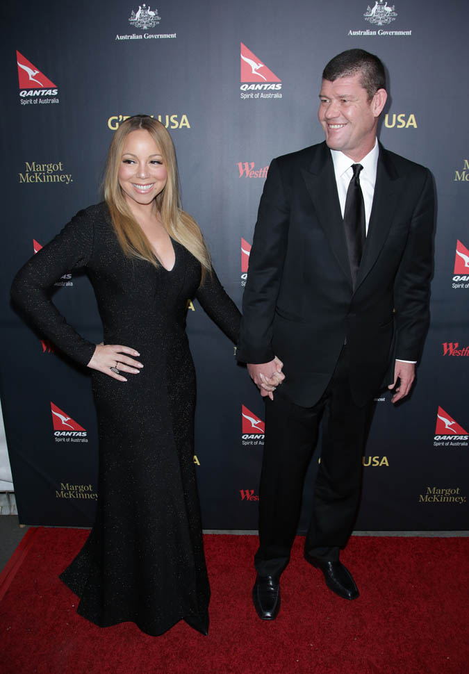 It’s been a week since Mimi and James Packer got engaged. Last night she accompanied him to the G’Day Los Angeles Gala for their first official appearance since he put that monster of a rock on her finger.