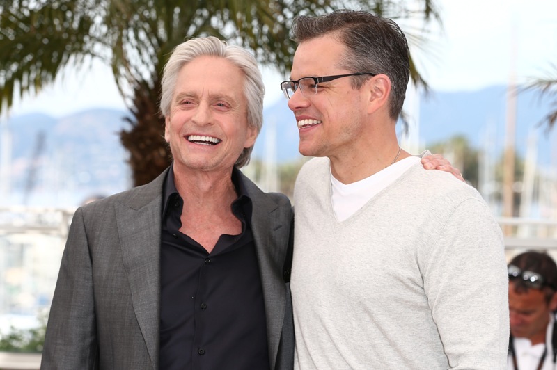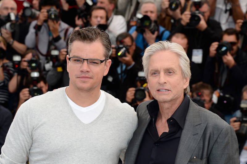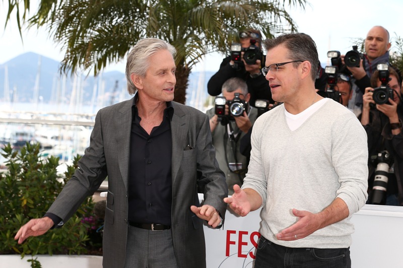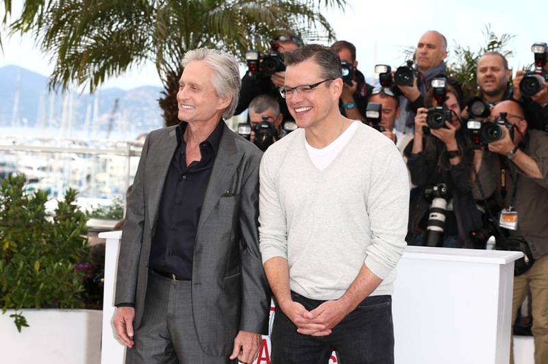 Michael Douglas and Matt Damon were in Cannes today to promote Behind The Candelabra, premiering on HBO and HBO Canada on Sunday. Here’s where I get spoiled and whiny and wonder about my screener. That said, I also haven’t checked the mail in several days. By the way, Game Of Thrones fans, Episode 9 has been pre-empted because of Memorial Day and Candelabra will air in its place so don’t be surprised if you tune in on Sunday expecting the Khaleesi and find a lot of rhinestone, marble, and hairspray instead.