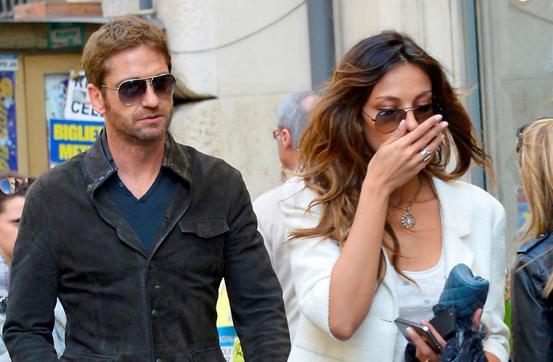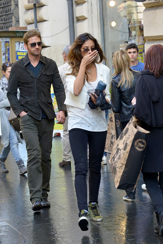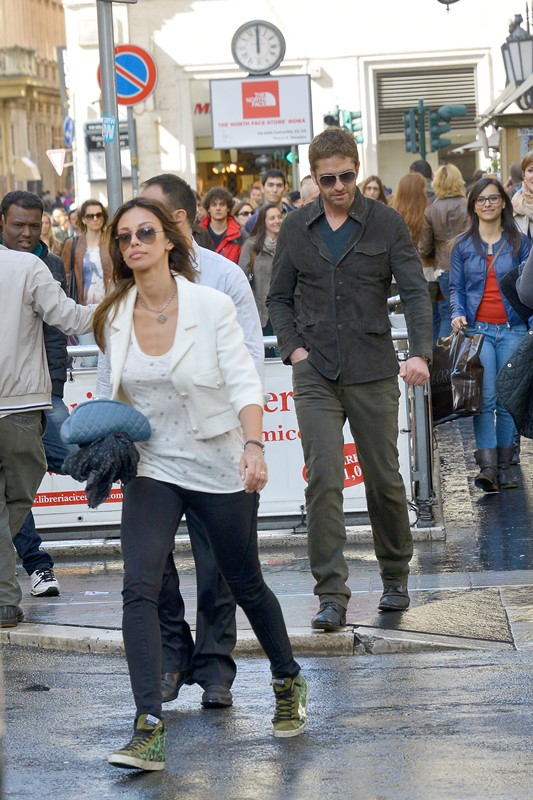He was holding hands with Madalina Ghenea in Milan yesterday. Who? She used to date Gerard Butler. Here are photos of Ghenea with Spittle in Rome last April. Gross.