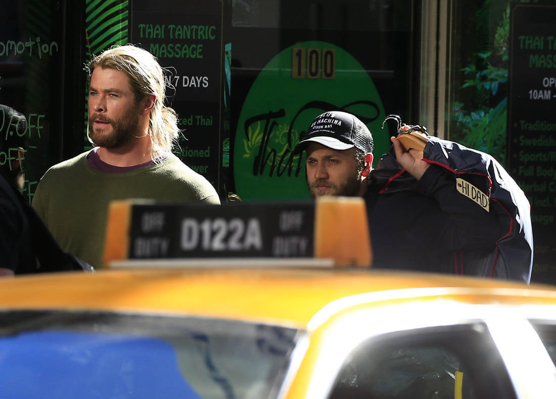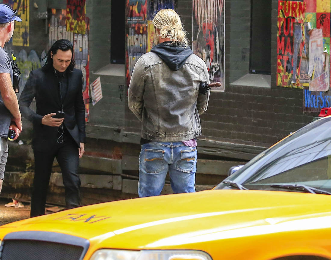 Over on Instagram, T-Hidds posted a photo of him and Chris Hemsworth on set, alongside a photo from the first Thor movie, but I’m more focused on the headline on the newspapers: Murder in Times Square – Australian girl massacred while enjoying her holiday.