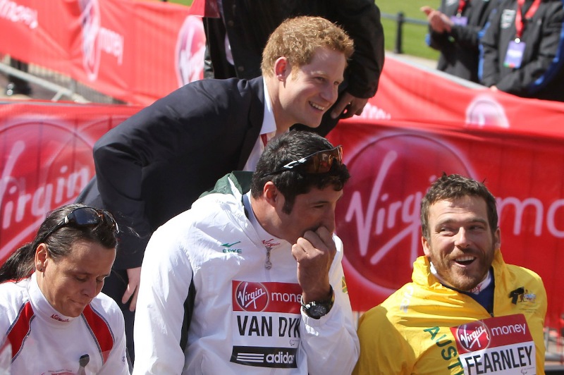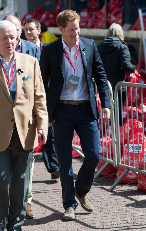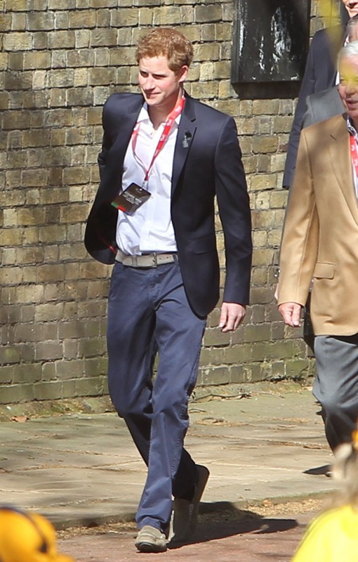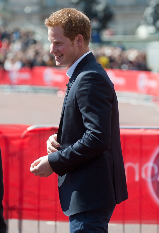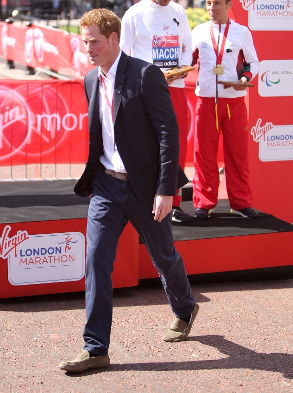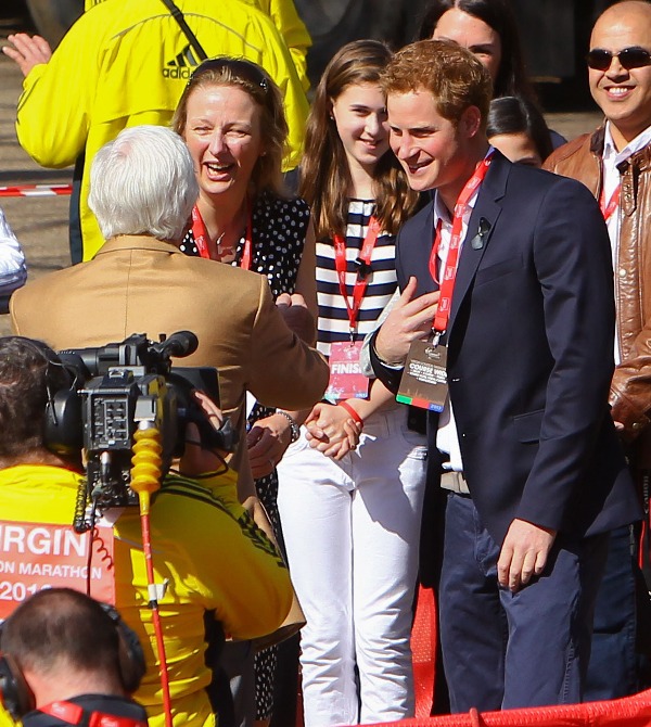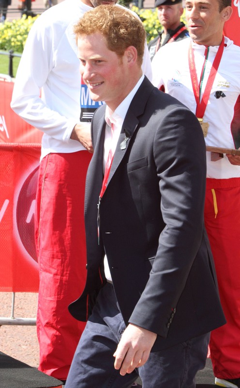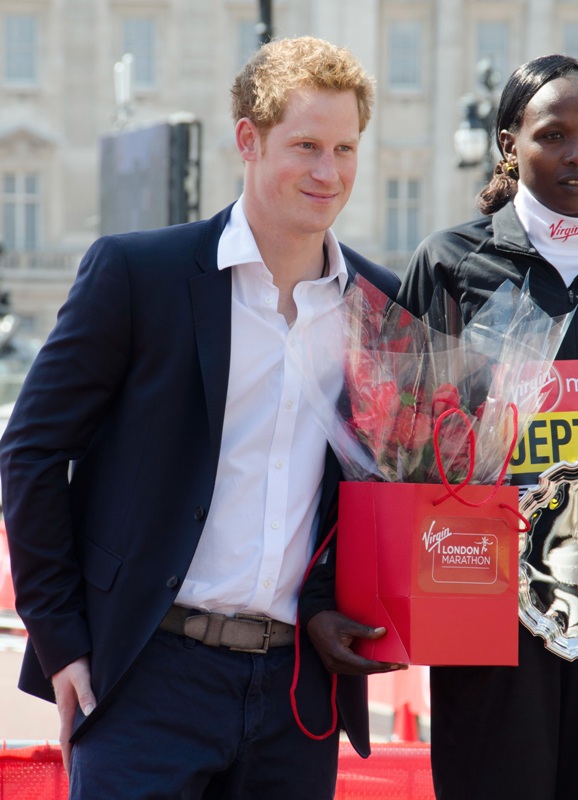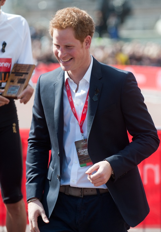 Prince Harry was at the London Marathon yesterday supporting the athletes. He took his time speaking to participants, encouraging their efforts, expressing his admiration for what they’ve accomplished. And when they asked him whether or not he or his family members would run the marathon one day, as usual he joked about his brother William, saying that he’s now too old to race. And everyone laughed and blushed and probably squealed when he walked away because that’s just the effect the royal ginger scamp has on the people, as imperfect as he is.