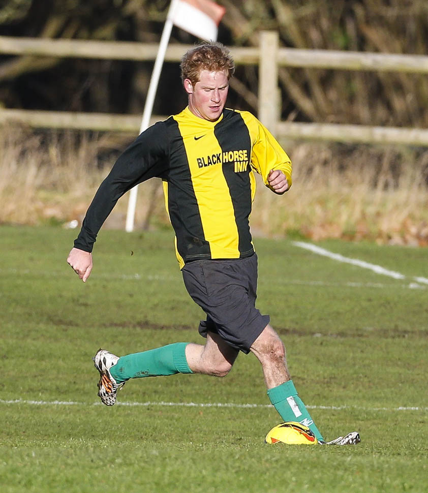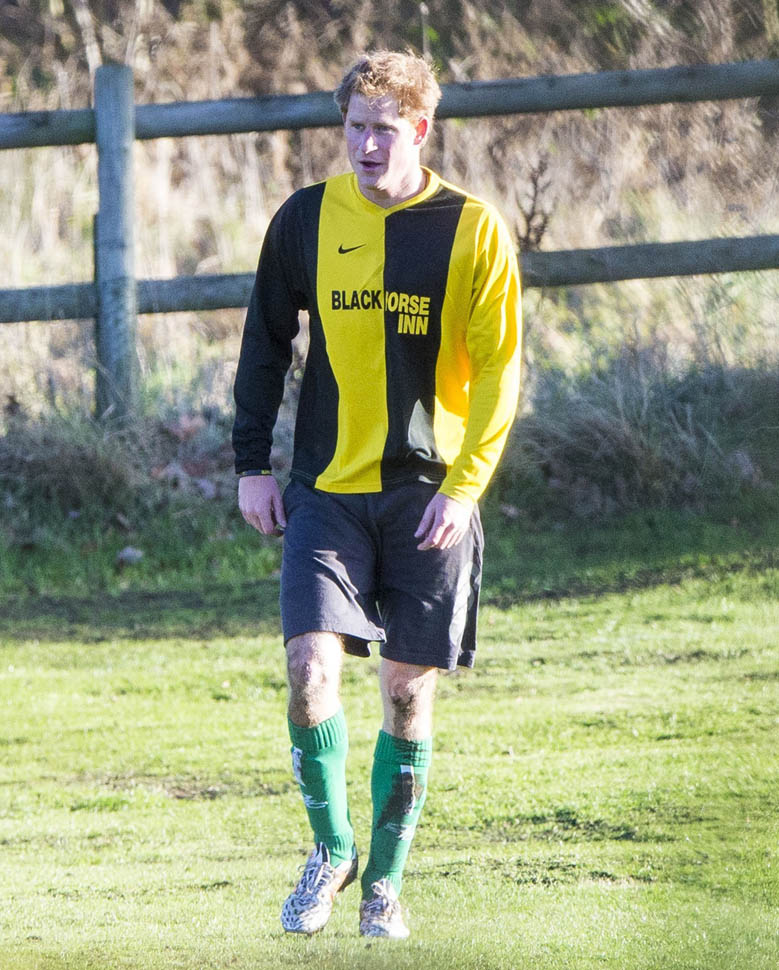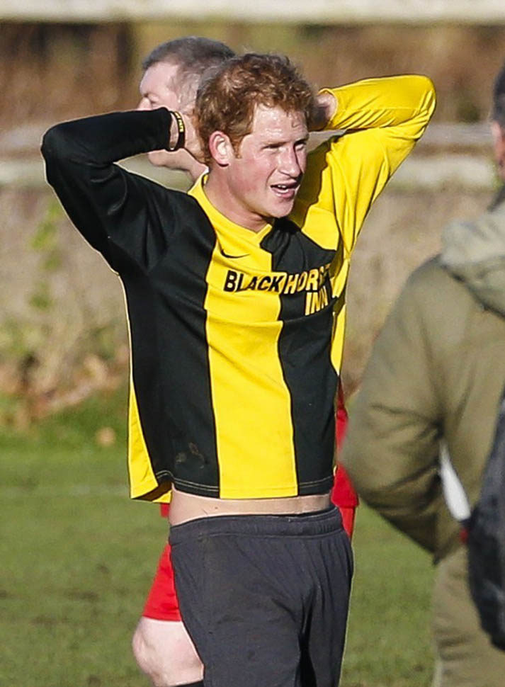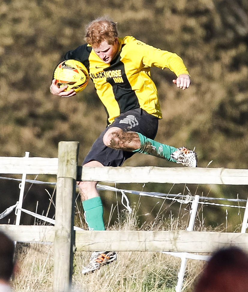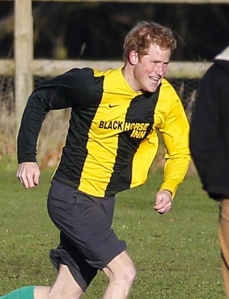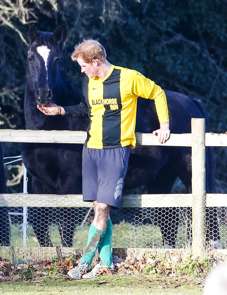 Prince Harry participated in a charity football game today at Sandringham where the Queen and the royal family gather for Christmas every year. He’s animated and sweaty and flushed and contorts his body in various positions and…well…
