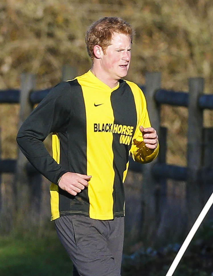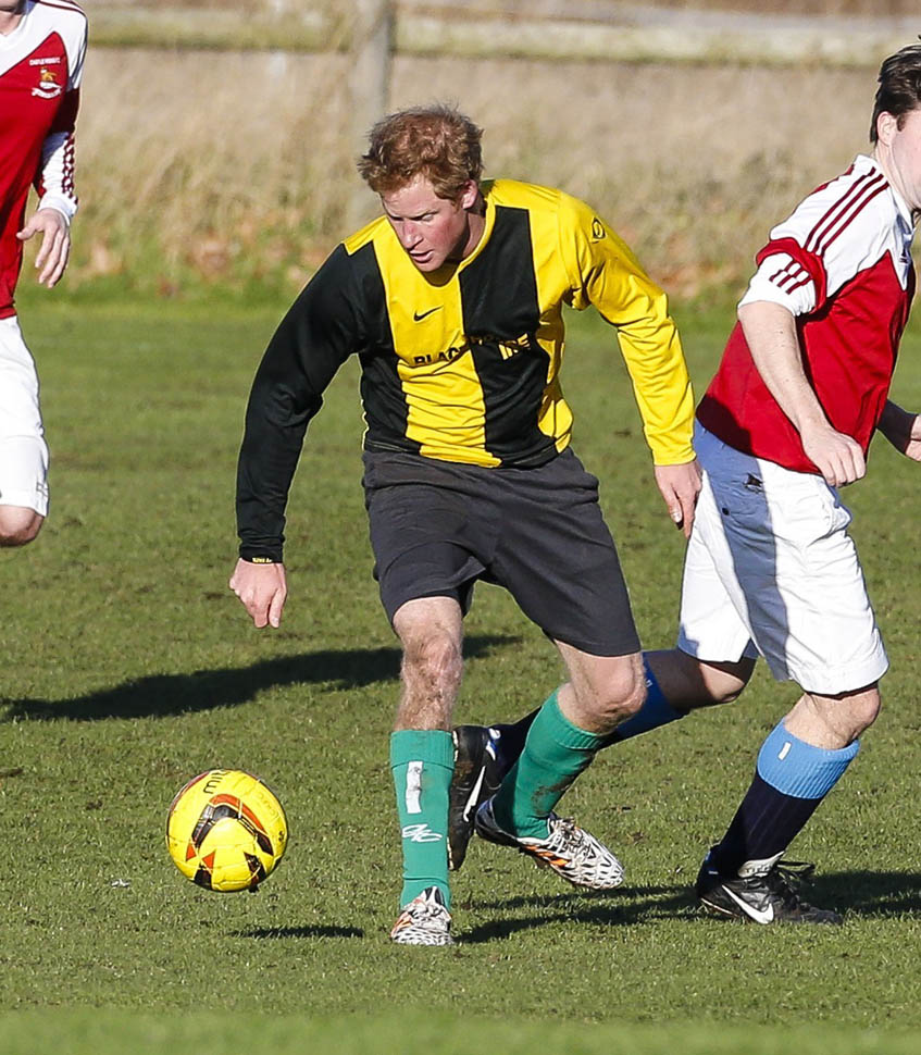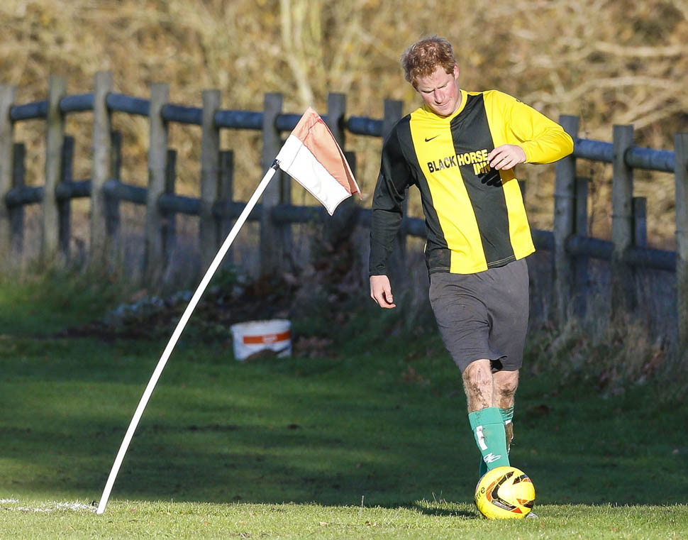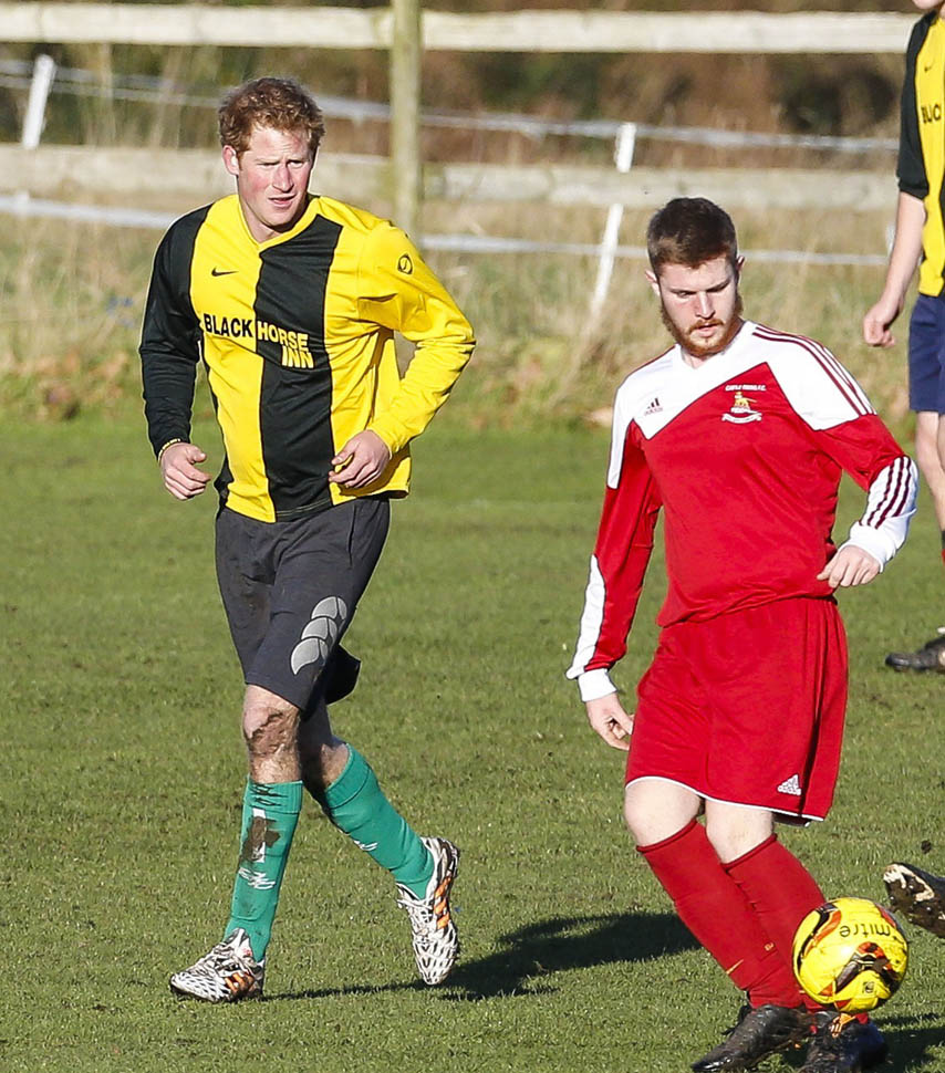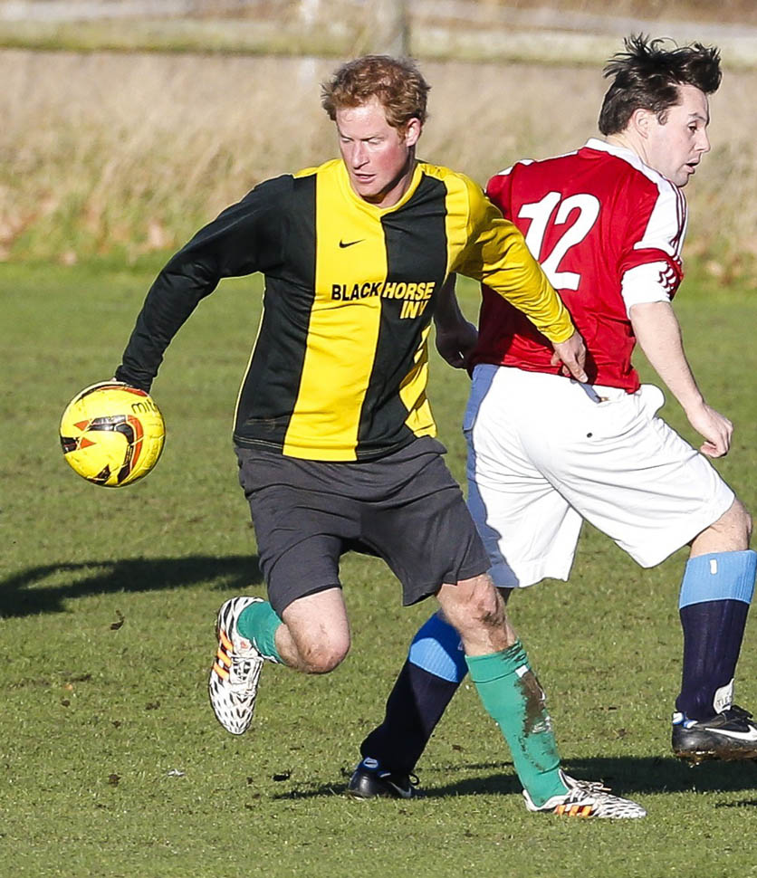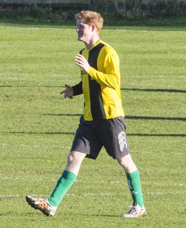Prince Harry participated in a charity football game today at Sandringham where the Queen and the royal family gather for Christmas every year. He’s animated and sweaty and flushed and contorts his body in various positions and…well…