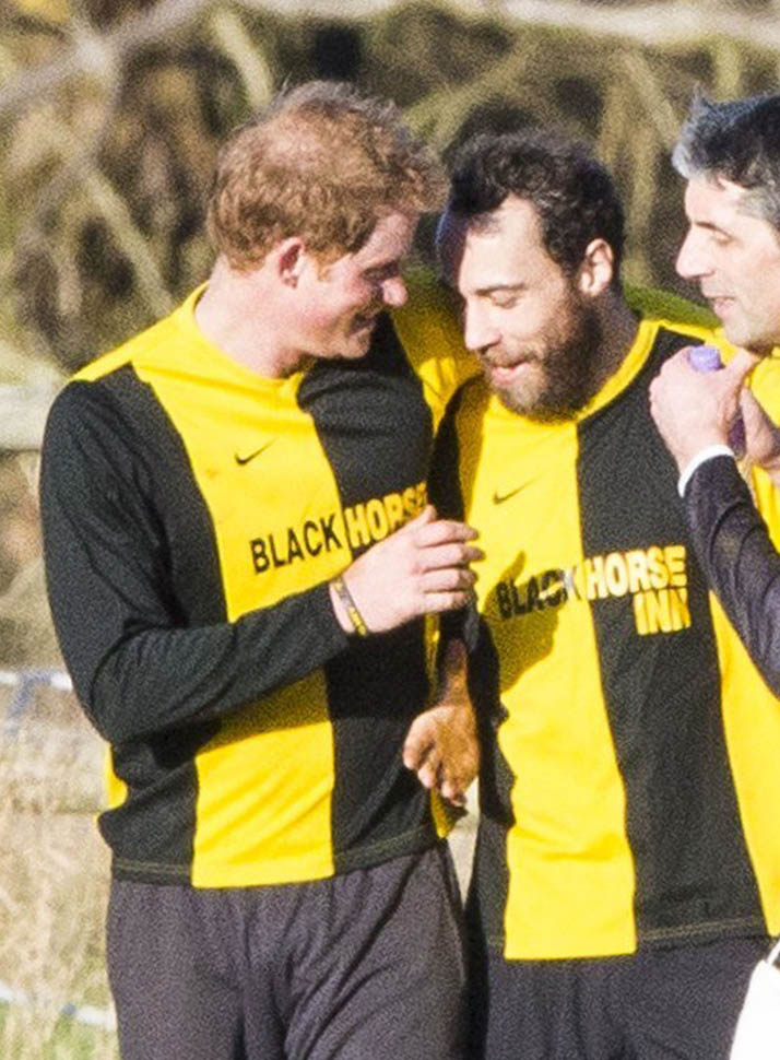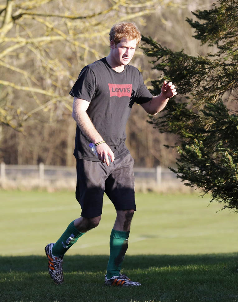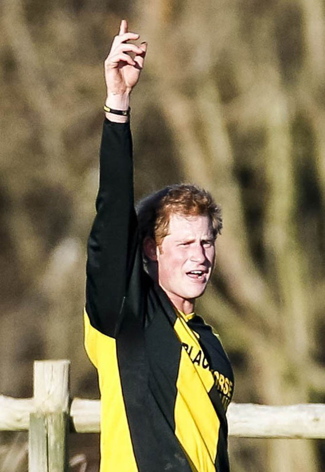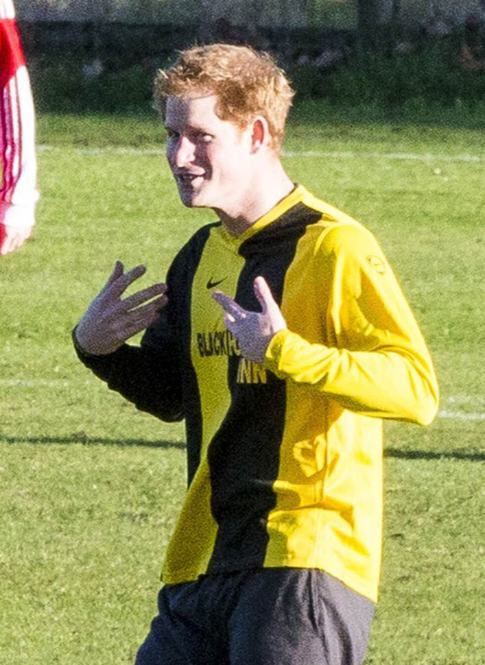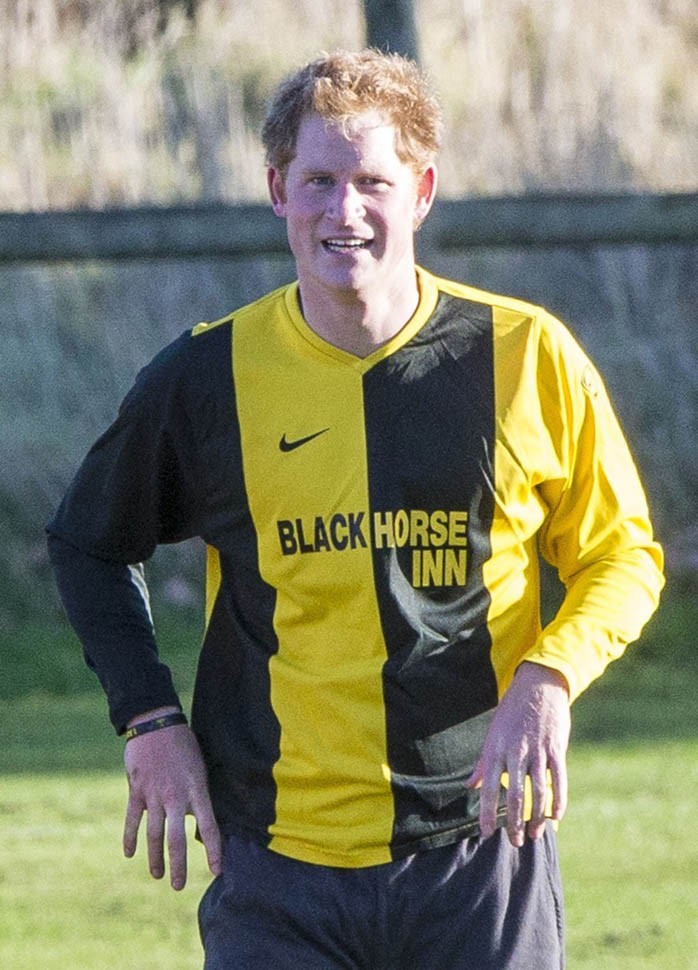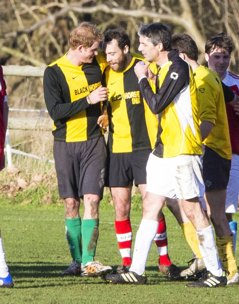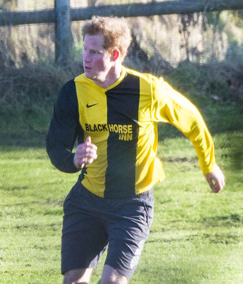 Prince Harry participated in a charity football game today at Sandringham where the Queen and the royal family gather for Christmas every year. He’s animated and sweaty and flushed and contorts his body in various positions and…well…
