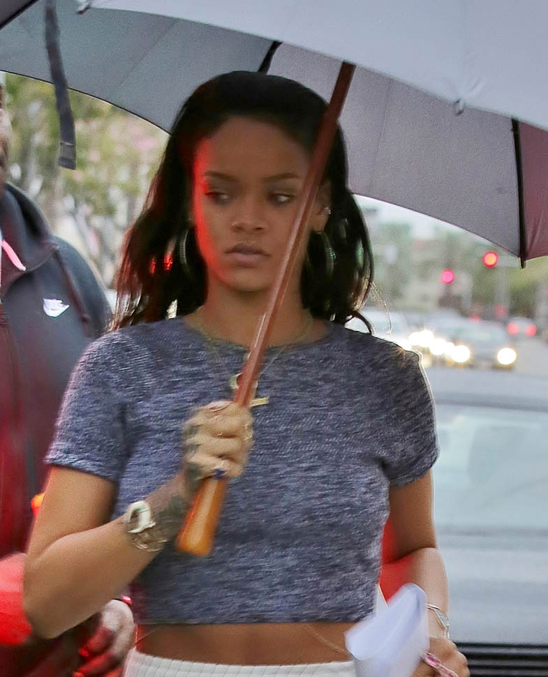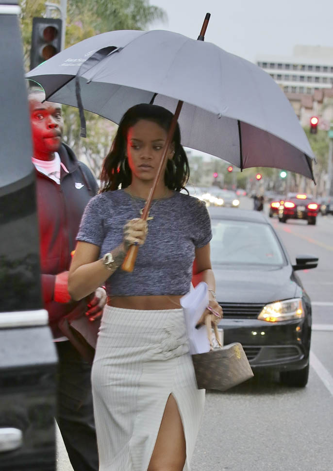 Here she is yesterday in Beverly Hills. All quiet on the Leonardo DiCaprio rumours. Last week US Weekly claimed they’ve been f-cking for years whenever he’s not with a model. How is that guy keeping Rihanna coming back? With what skills?