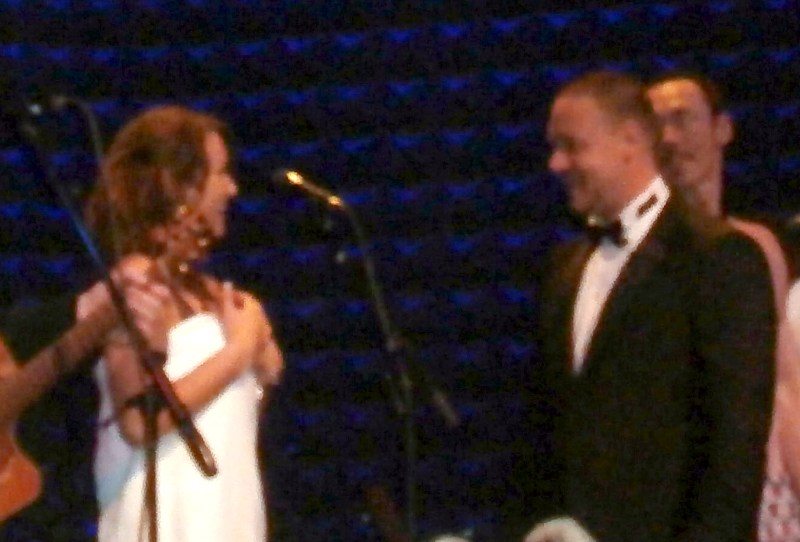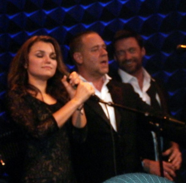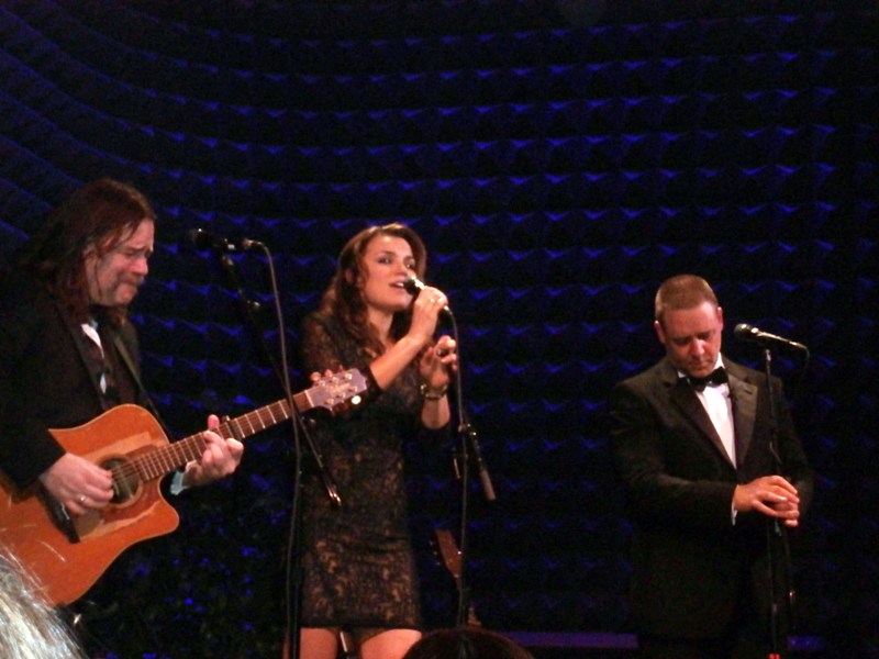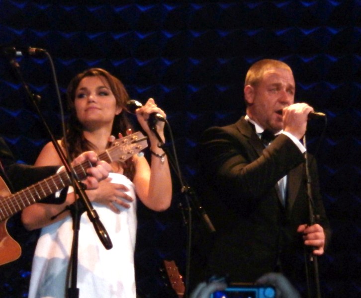Attached -- Crowe and Barks singing together with his band in New York in December.