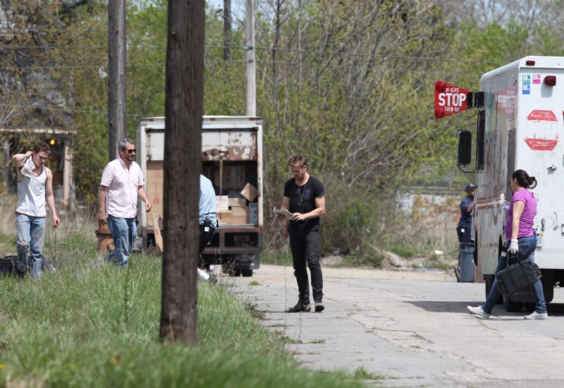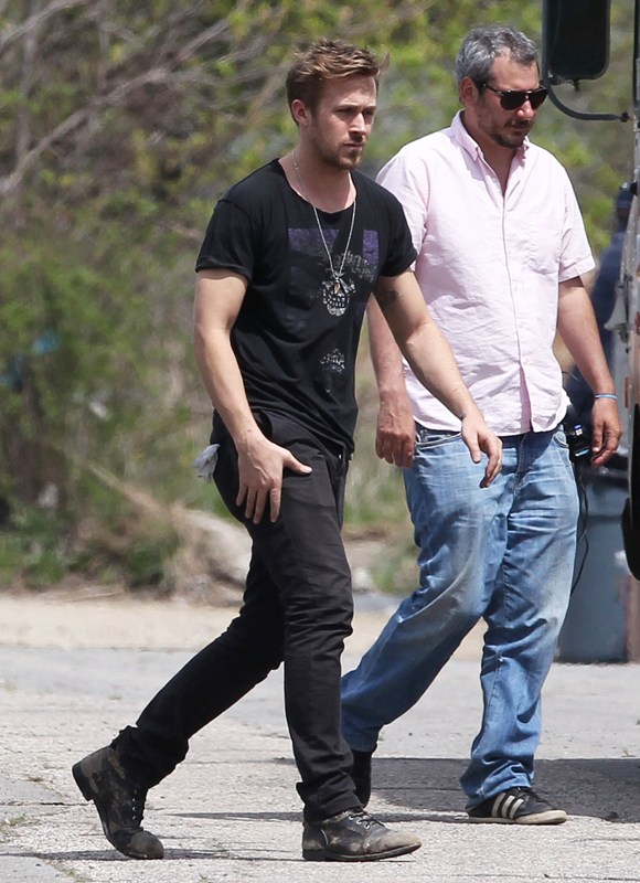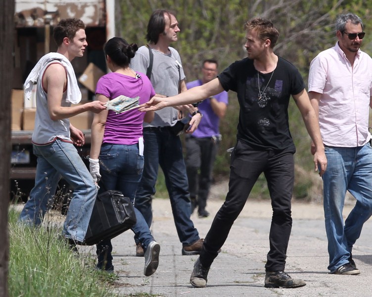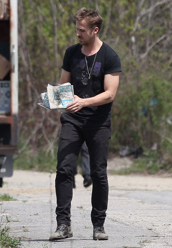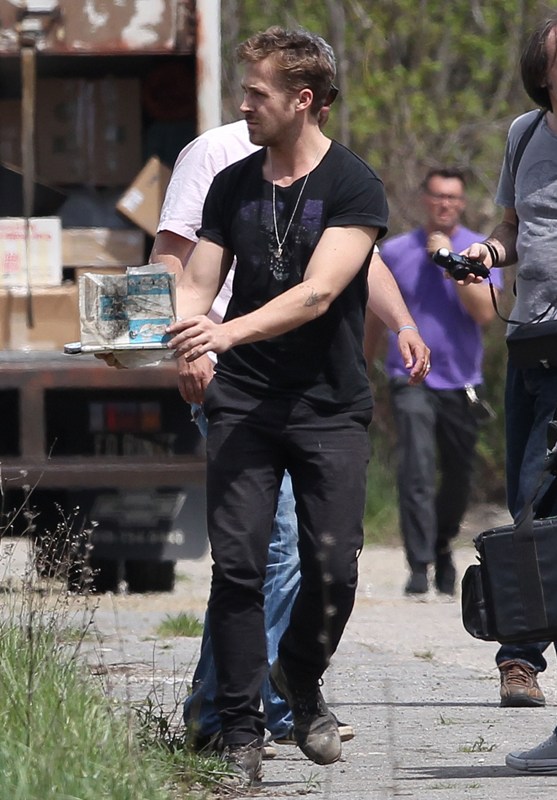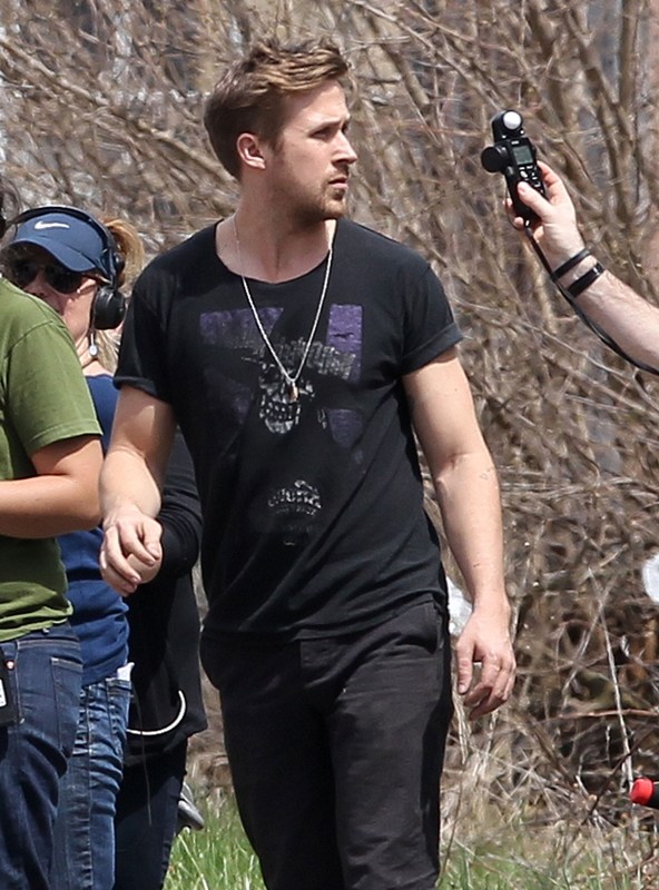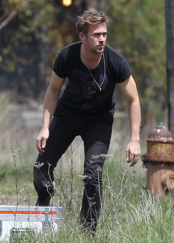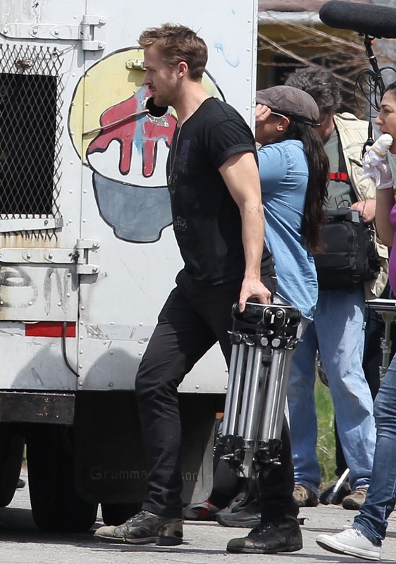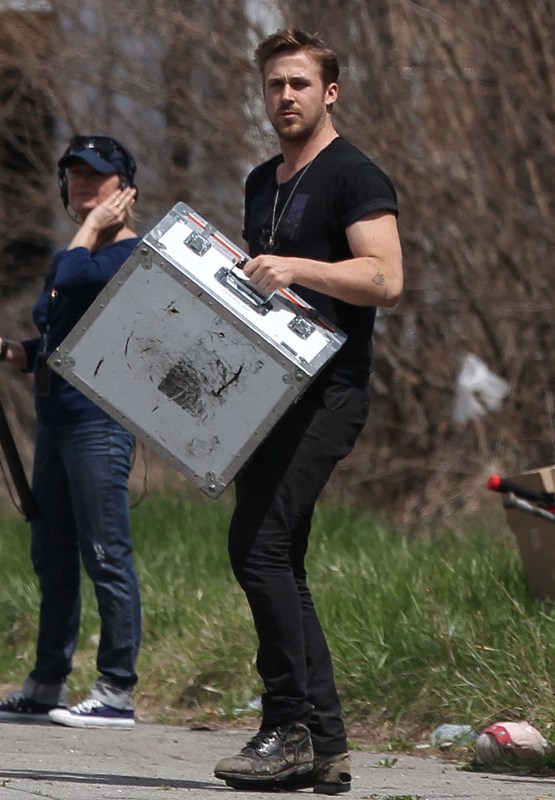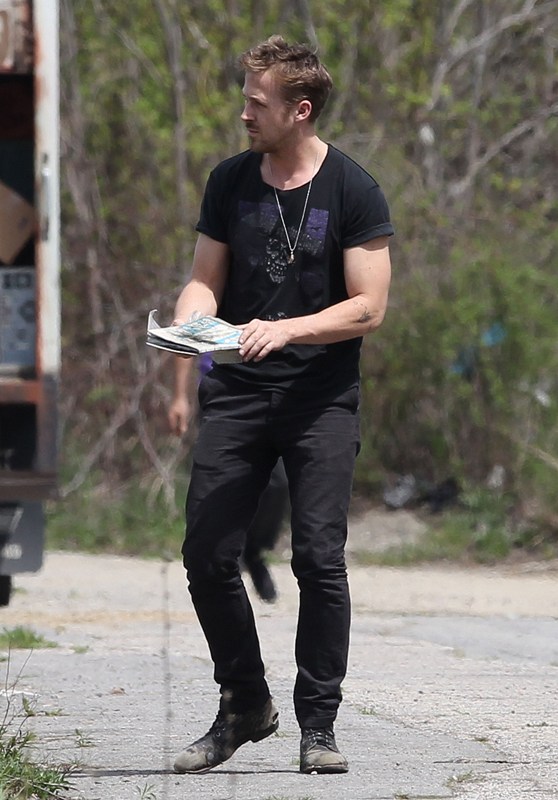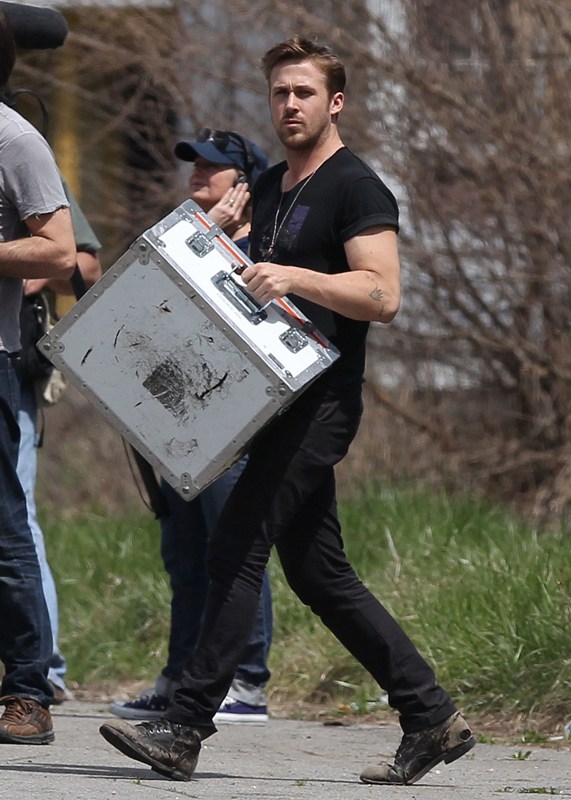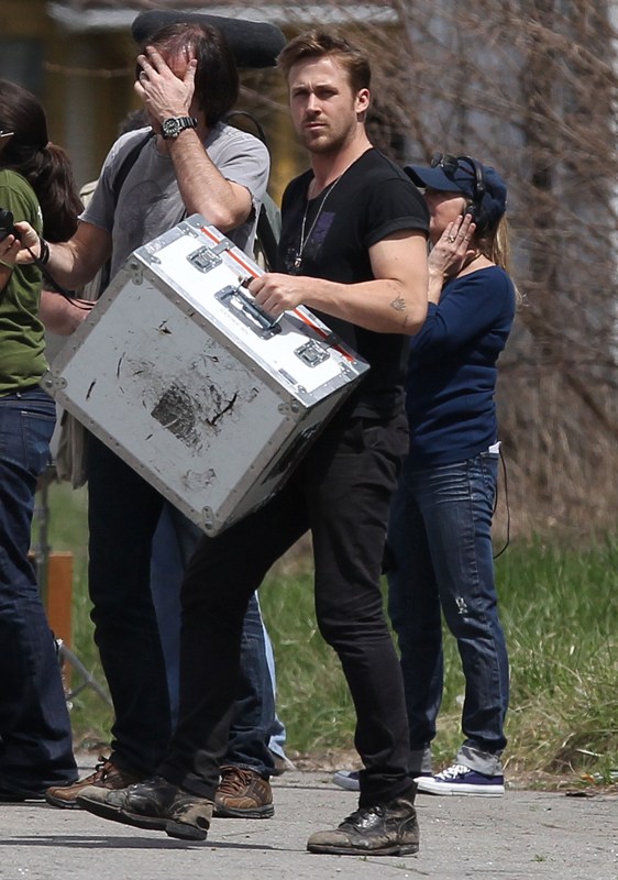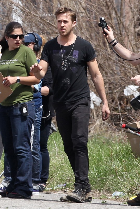 Ryan is directing his first film called How To Catch A Monster. Here he is lifting sh-t on set in Detroit the other day. I dunno, I thought it might make you swoony.