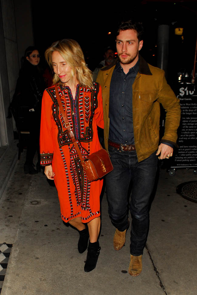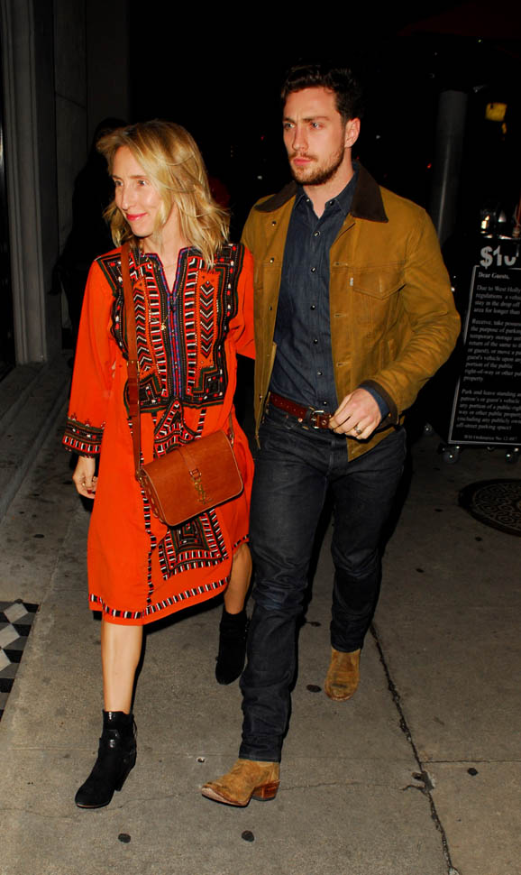My Obsession, Sam and Aaron Taylor-Johnson, went out last night for dinner in LA. You know what I love about her? I love that she’s keeping her own face. And that she’s not always heavily made up. That said, is it wrong for me to appreciate that? Serious question. I mean, if she wants to youth-tweak and youth-contour, that’s cool too. But, to me, I read so much confidence from her in that she knows she’s with a muuuuuch younger man and she still isn’t trying to make herself appear to be younger – at least not obviously. Does that make me anti-feminist though? Is there a judgy sentiment embedded in there that completely undermines my position? Let me know.