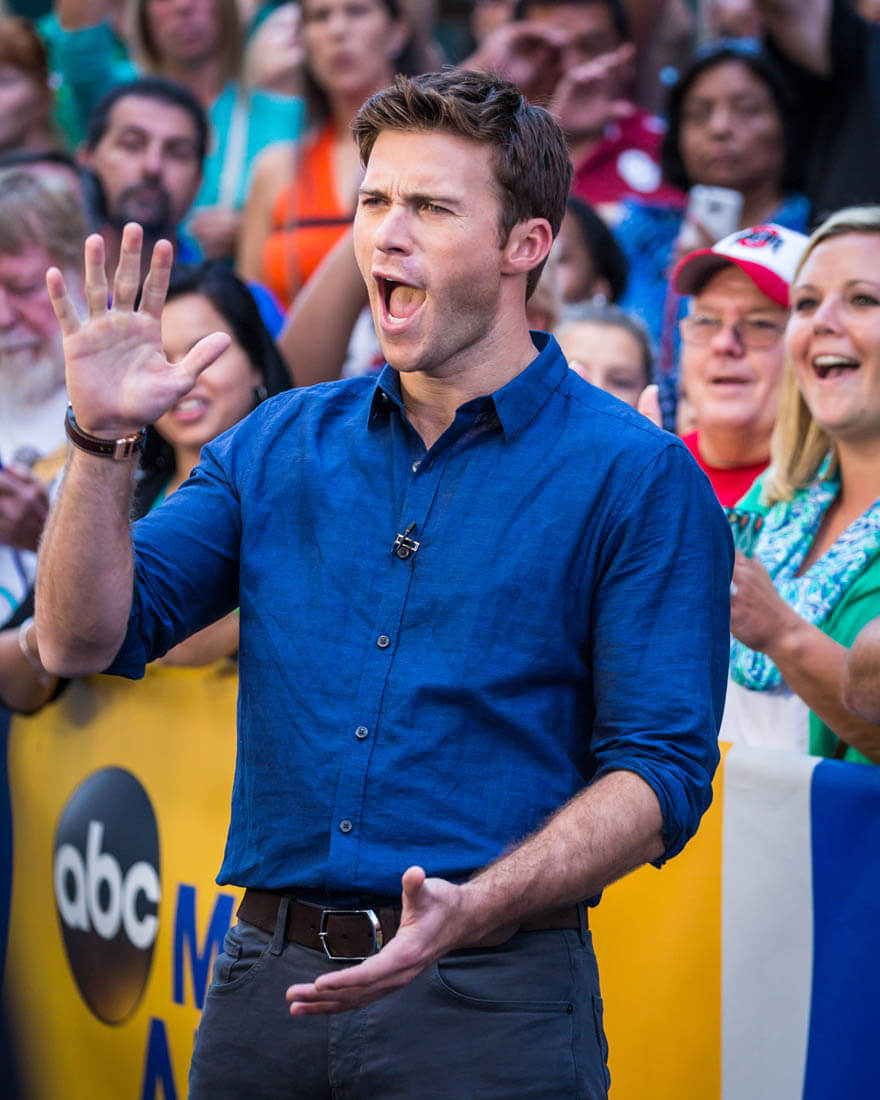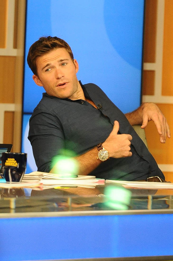Scott Eastwood was on Good Morning America today promoting Suicide Squad. In which, according to Sarah’s review, he is completely useless. He was eating before the interview. So he had to have his teeth checked. This face? The face he’s making while getting his teeth checked? It’s not far from his trademark douche-bro face. This is that face: