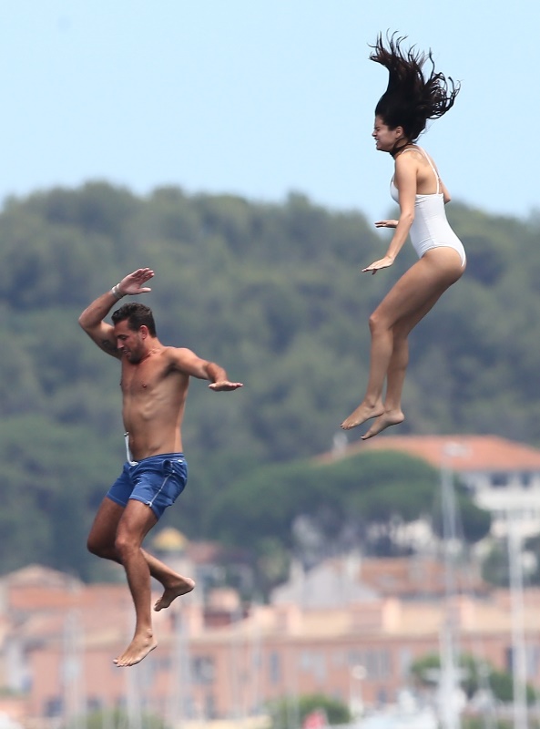 Selena Gomez celebrated her champagne birthday yesterday in Saint Tropez. She went out on the jet ski with a cute guy. A tall, cute guy. Don’t you think JB wishes he was taller? He totally does. It’s probably the only thing he can’t buy.