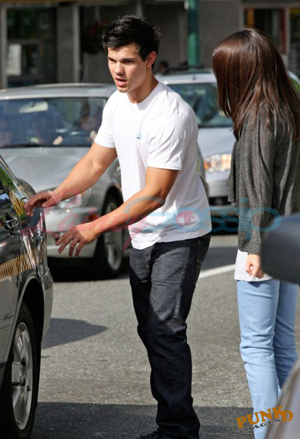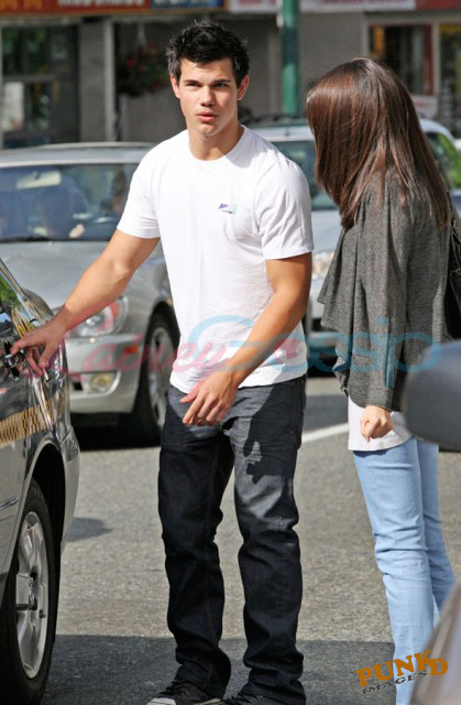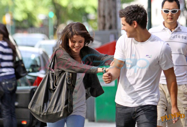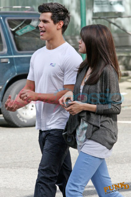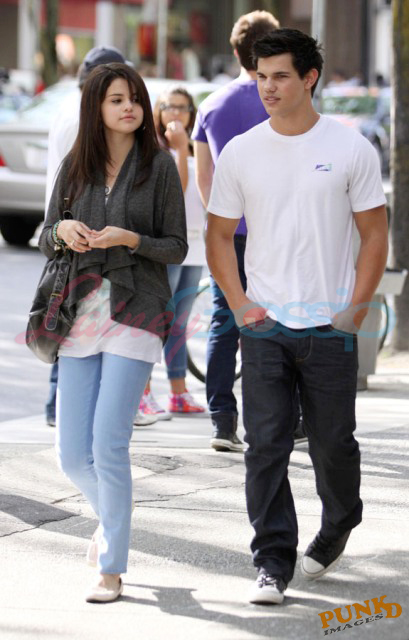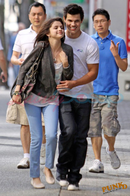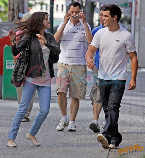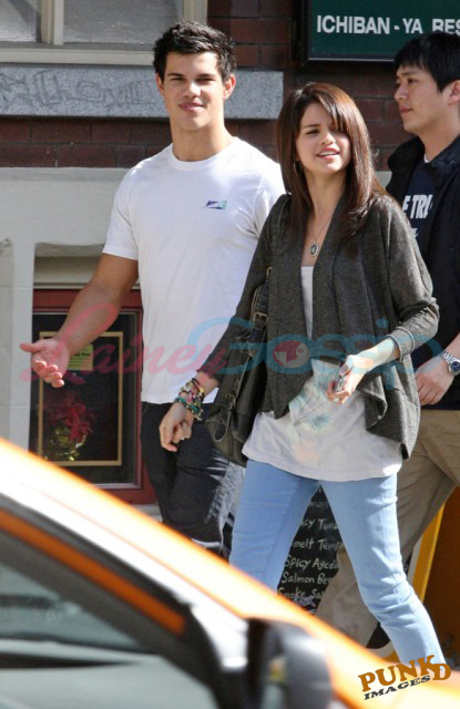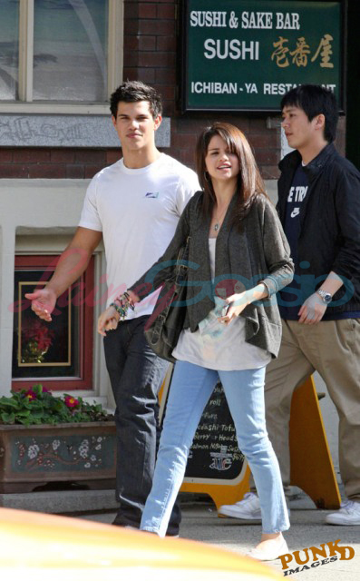 Selena Gomez and Taylor Lautner on a sunny Sunday in Vancouver out for sushi and all smiles and affectionate and flirty and are these two gorgeous together or what? It’s like a walking advertisement for beautiful skin. His is flawless, hers is equally so. Ridiculous.