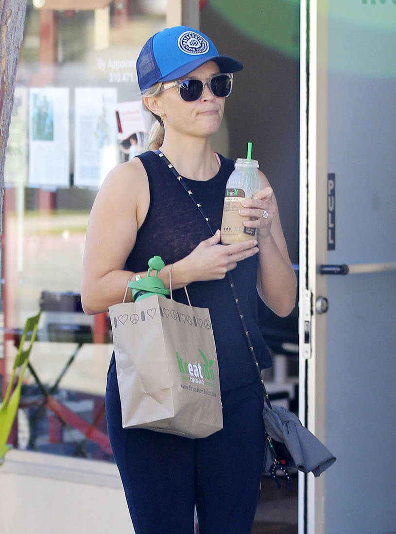 Attached - Reese Witherspoon out in LA after a workout yesterday.