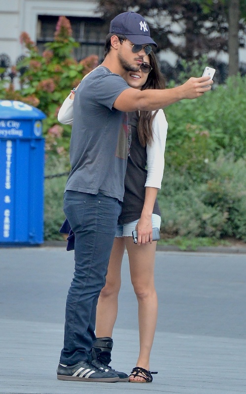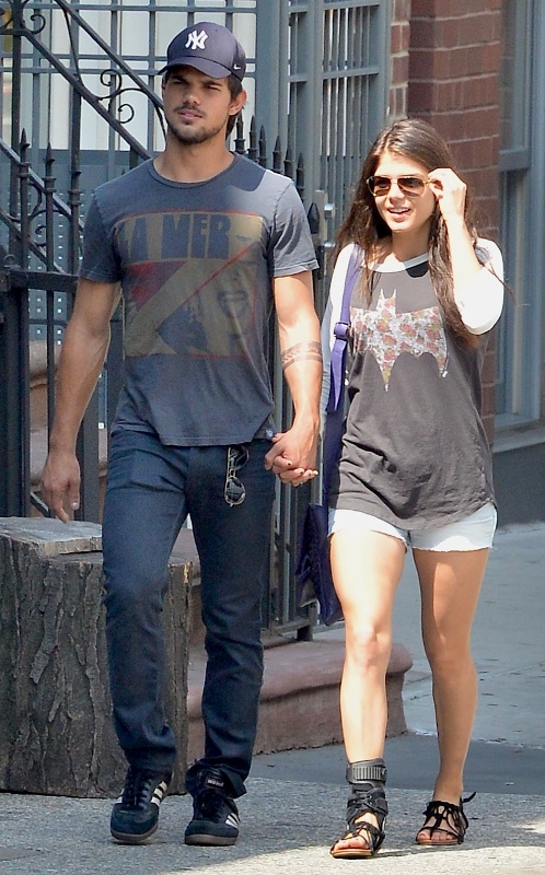 Taylor Lautner has been shooting a movie called Tracers in NYC. His co-star is a Canadian actress called Marie Avgeropoulos. Apparently the two are dating now as they’ve been seen, and papped, off-set holding hands. Taylor is 21 years old. Marie just turned 27. So Tom Cruise Jr is with an older woman, just like Tom Cruise was early in his career. Marie’s his Mimi Rogers. Because if an older woman will date him, it means he’s not a kid anymore…? That must be what his agent is hoping.