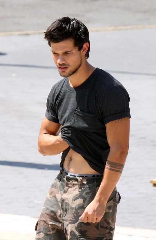 Lautner hasn’t worked much since Twilight wrapped. He returns now as a proper 21 year old grown up with facial hair and the same abs.