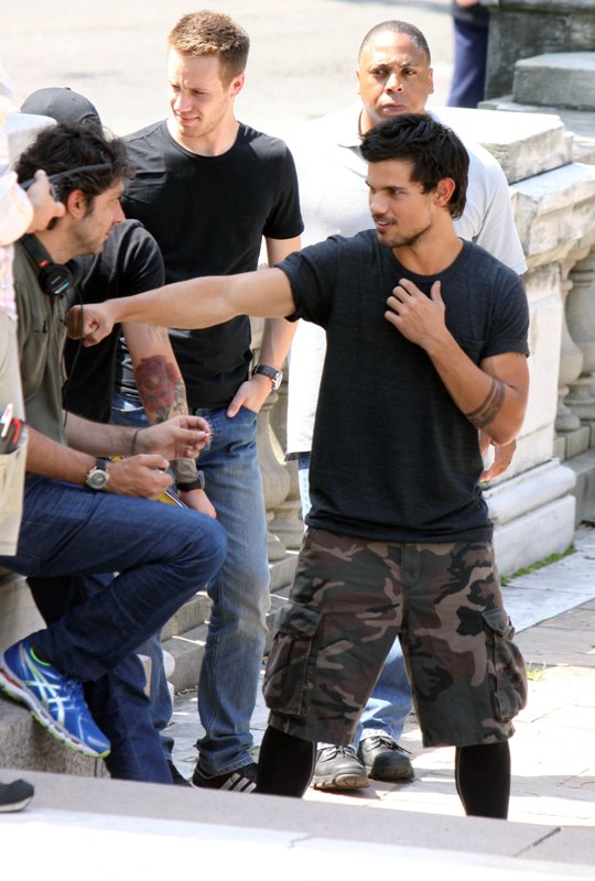 First reaction seeing these shots of Taylor Lautner on set today in New York: