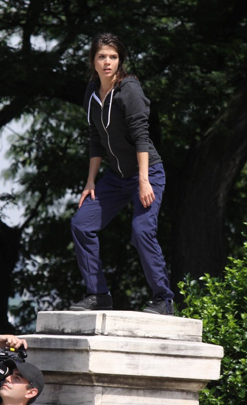 Lautner’s new film is called Tracers. It’s about a skater girl played by Marie Avgeropoulos (similar in features to Lily Collins, non?) who gets into trouble with a gang and meets Lautner, a bike messenger. And love happens while parkour-ing.