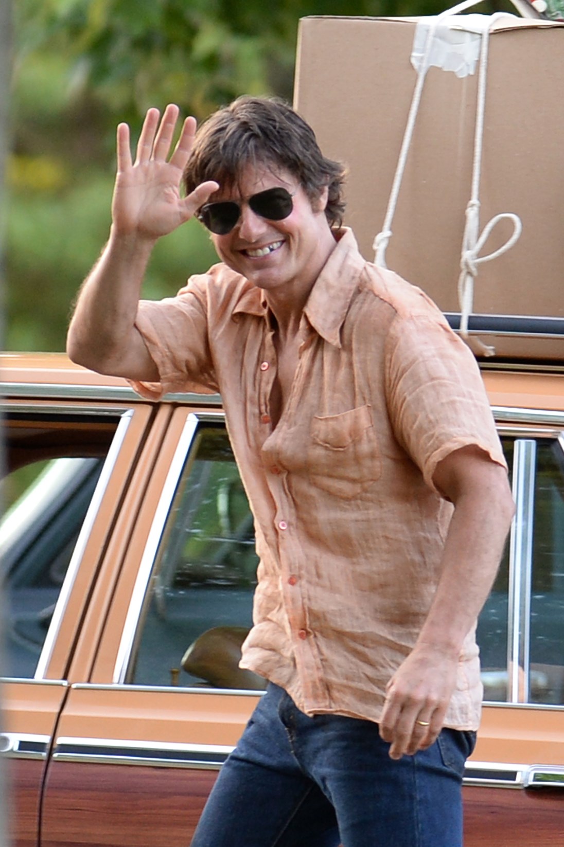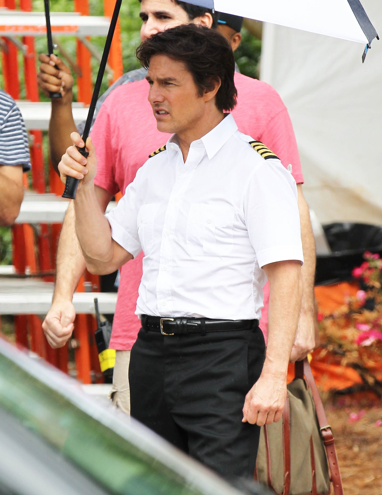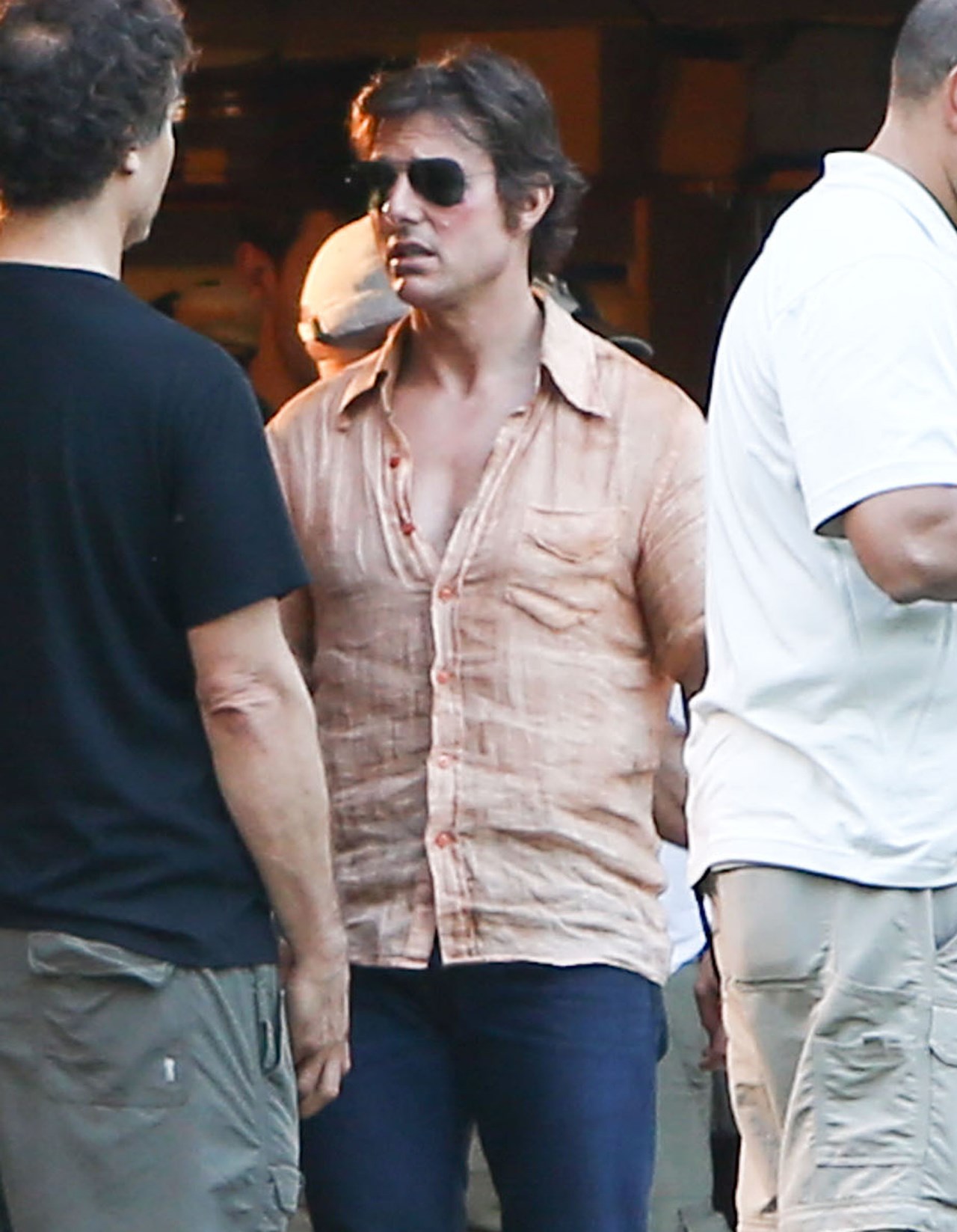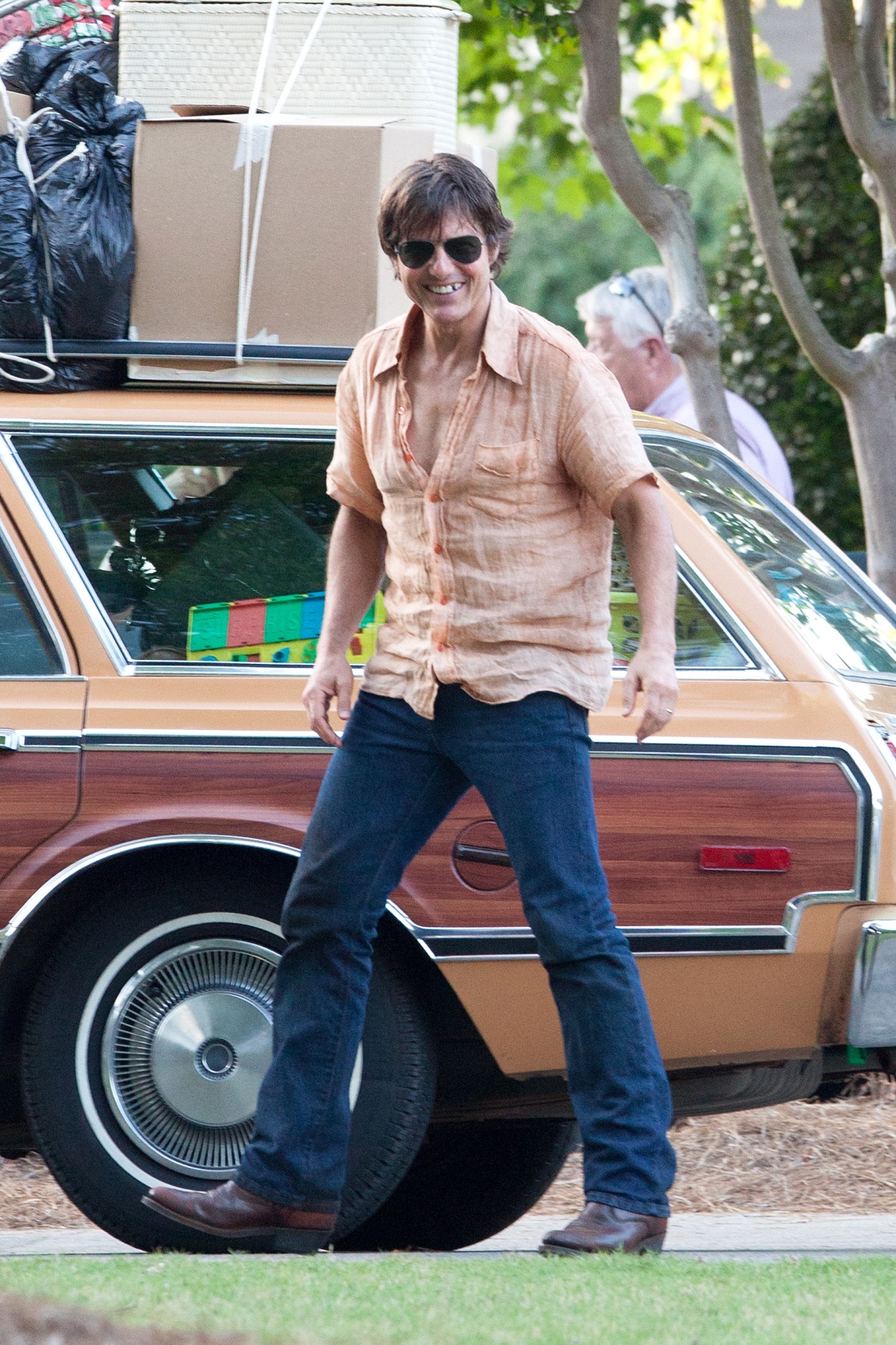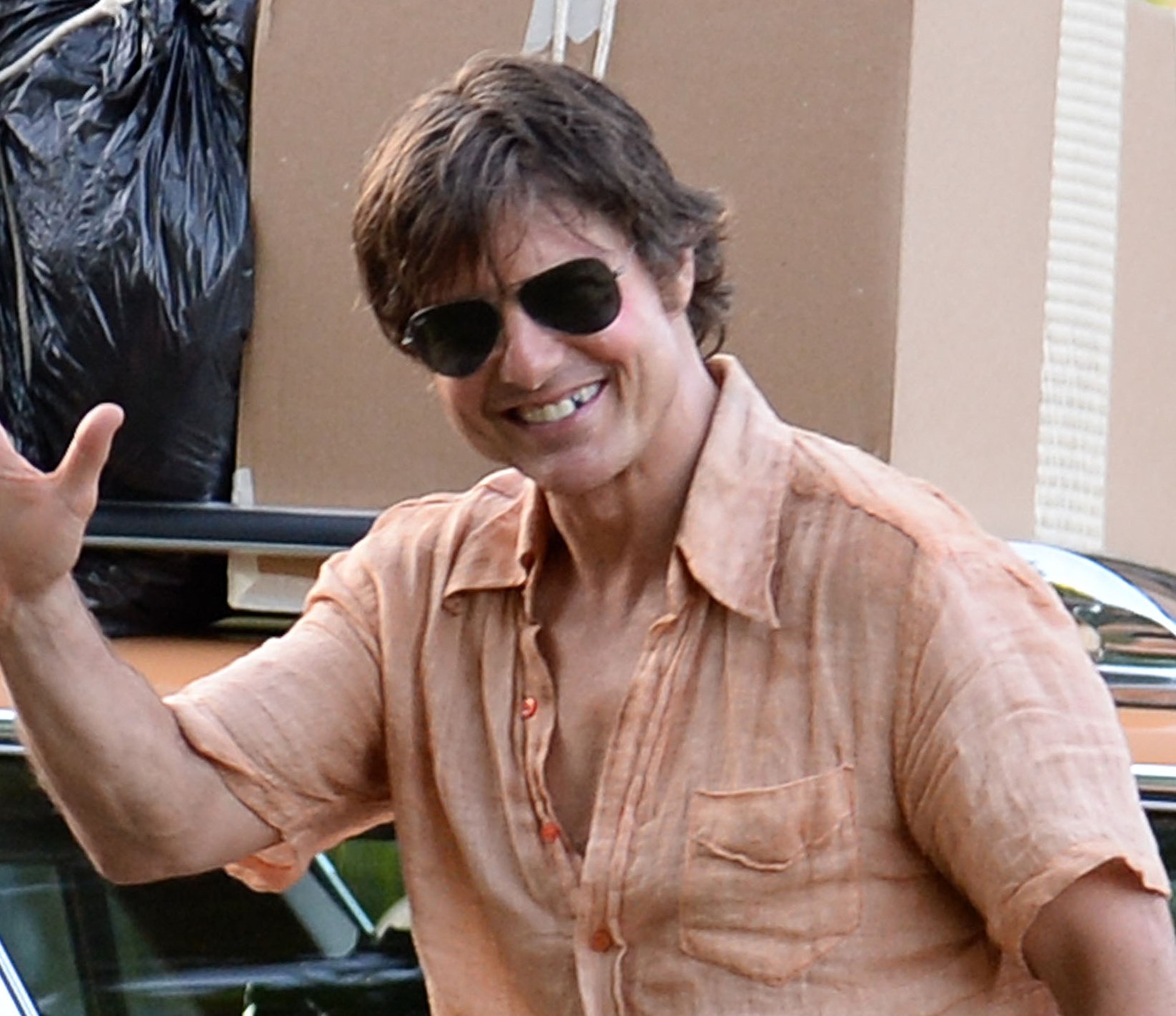 Tom Cruise is currently in Atlanta working on Mena. Here he is on set yesterday showing off a gap in his teeth, obviously for the character. He’s playing Barry Seal, a real life pilot in the 80s who became a drug smuggler. Seal was supposedly a really big dude. Like 300 lbs. So initially everyone was thinking Tom would gain some weight. Clearly he’s channeling the spirit of the man instead embodying him. This is definitely a gritty character though. Seal is not supposed to be a hero. When he’s not being a hero though, Tom’s turns at being a dick can sometimes be … campy? You know why? It’s because he’s never been good at subtlety.