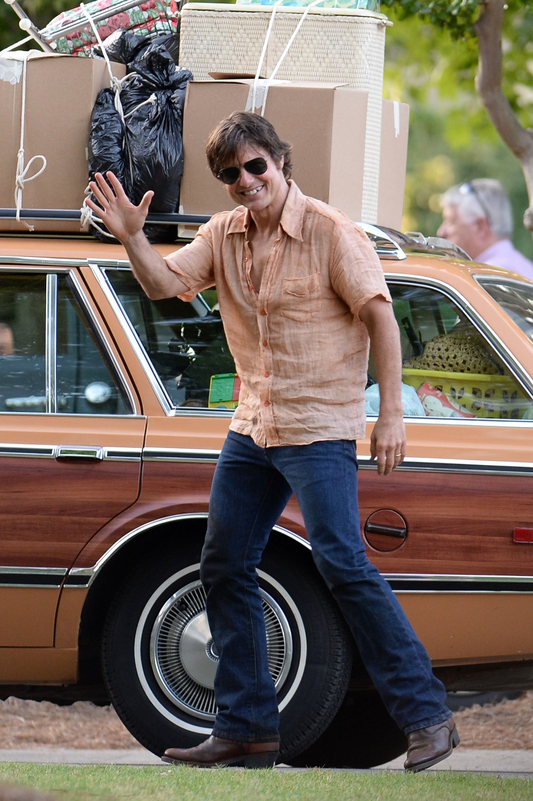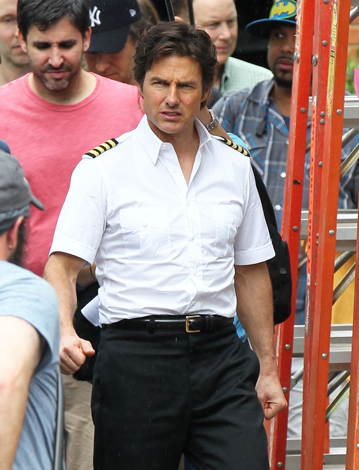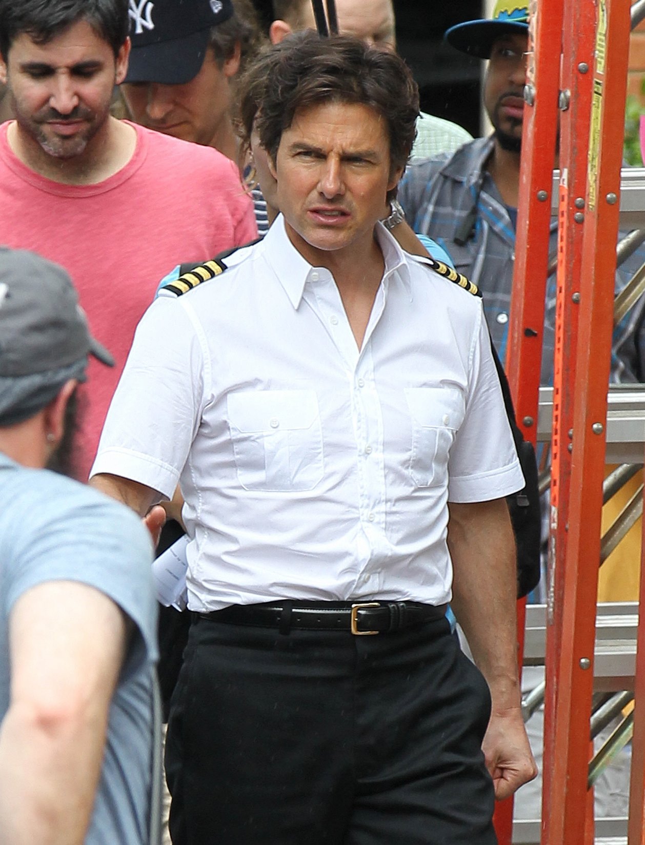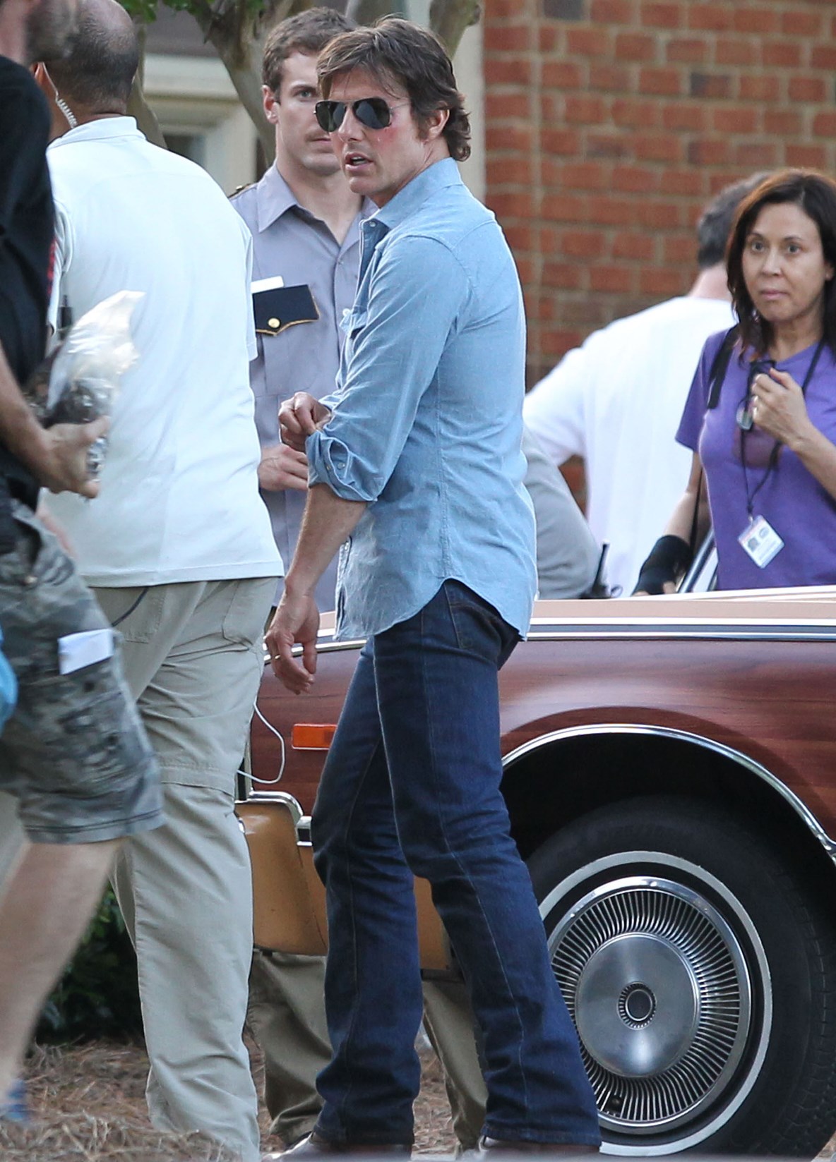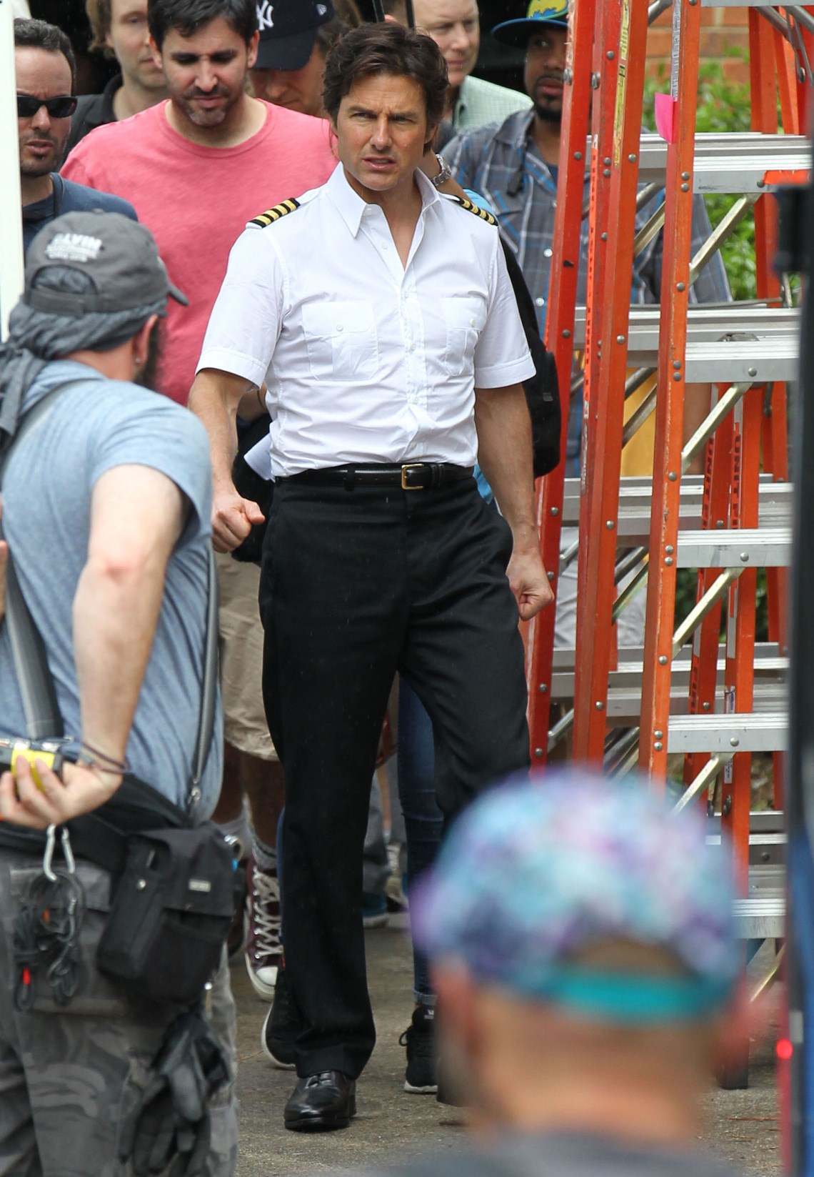 Tom Cruise is currently in Atlanta working on Mena. Here he is on set yesterday showing off a gap in his teeth, obviously for the character. He’s playing Barry Seal, a real life pilot in the 80s who became a drug smuggler. Seal was supposedly a really big dude. Like 300 lbs. So initially everyone was thinking Tom would gain some weight. Clearly he’s channeling the spirit of the man instead embodying him. This is definitely a gritty character though. Seal is not supposed to be a hero. When he’s not being a hero though, Tom’s turns at being a dick can sometimes be … campy? You know why? It’s because he’s never been good at subtlety.