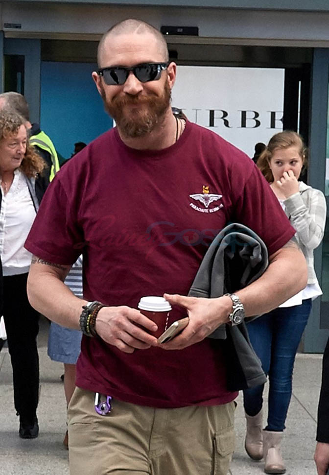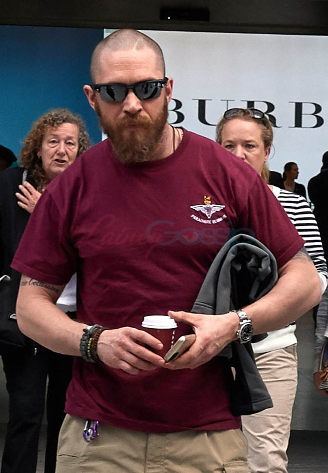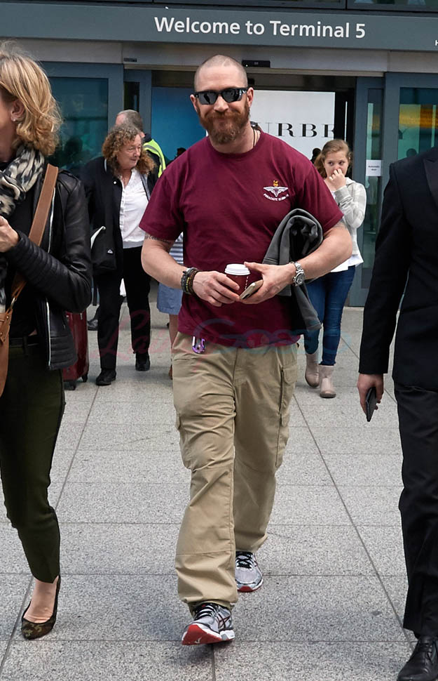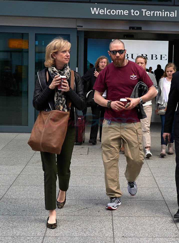 Tom Hardy’s been working on The Revenant for months in Canada. On Monday he returned to London from Calgary. Next: promotion for Mad Max: Fury Road, one of the most anticipated movies of the season.