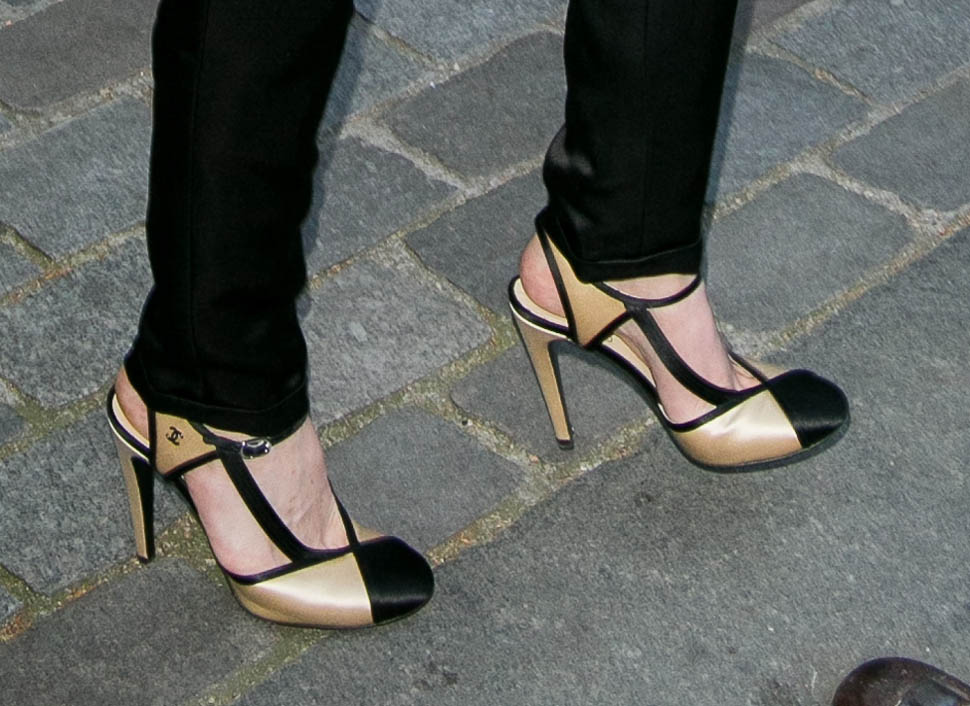 I needed to compose myself after seeing these shoes and becoming hysterical over them. The combination of gold and black is gorgeous. The black cap toe keeps the gold from overpowering. The black straps and the triangle sides make the shoe more than just a generic mary jane. This is an instant classic. I will love this shoe forever.