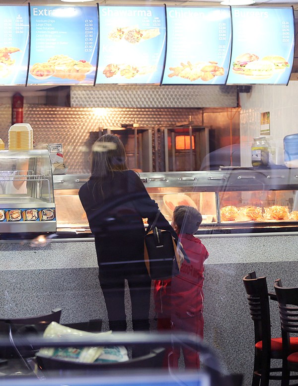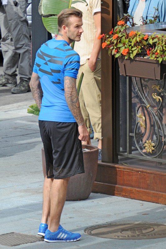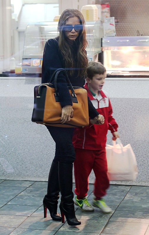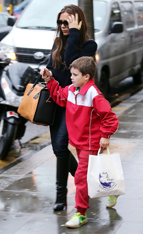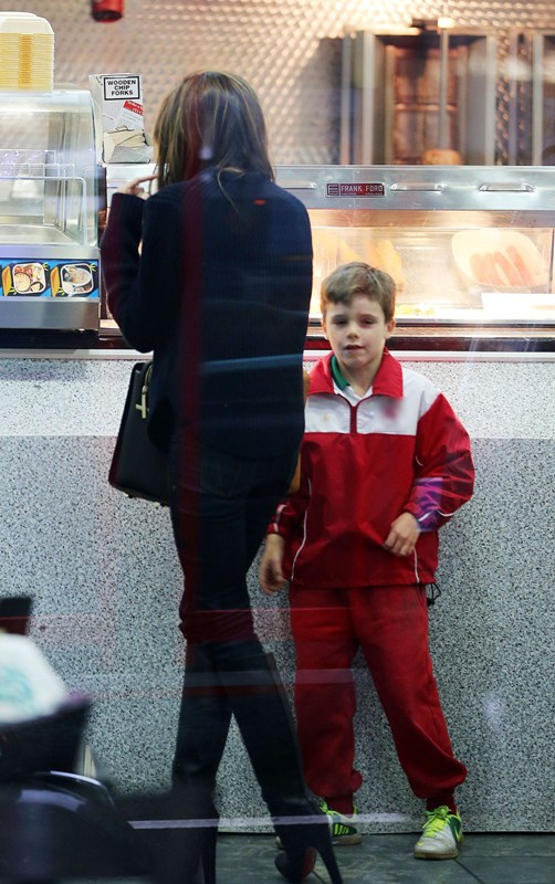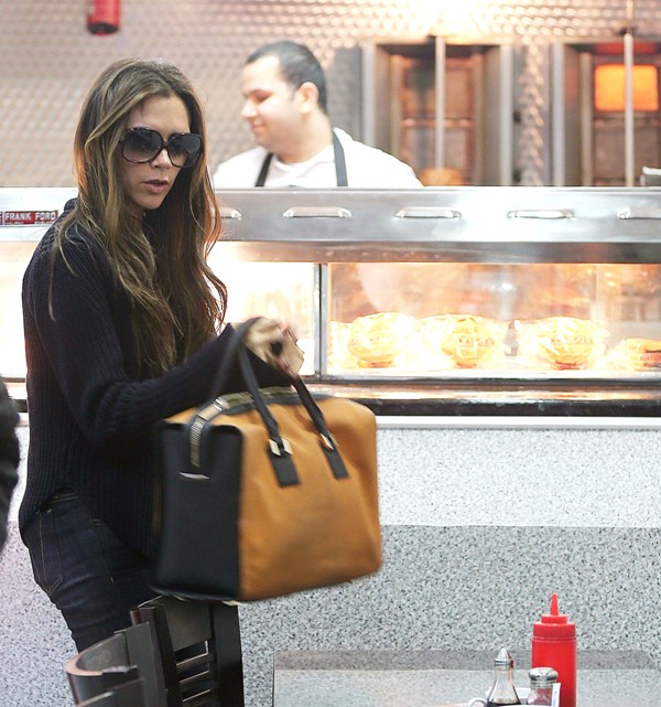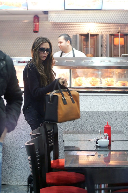 Also attached - Posh out in London today for fish and chips with Cruz and shopping on her own while David’s in Spain shooting a commercial.