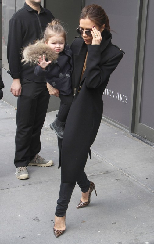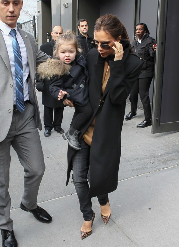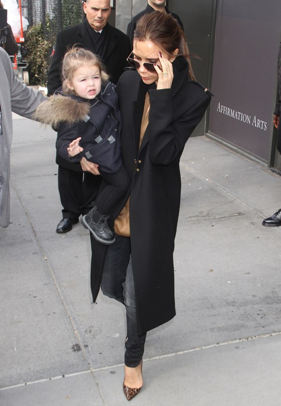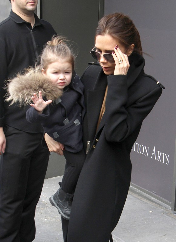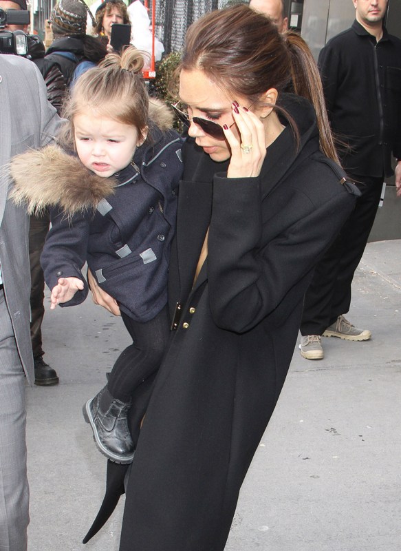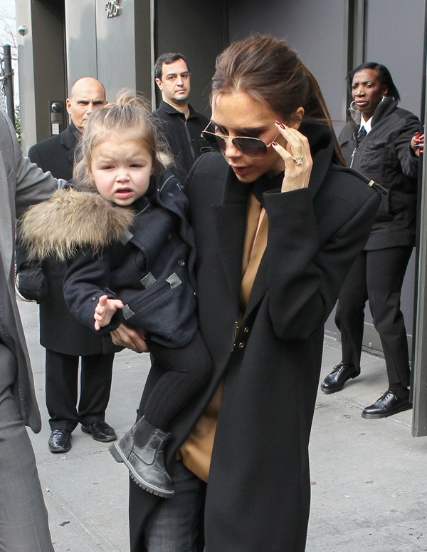 Here’s H7 with her ma after the presentation of Victoria, Victoria Beckham F/W 2013 at NY Fashion Week today. Click here to see the collection in LifeStyle. Who is that face? Why does this child have better outerwear than I do? And now that Posh is done with her designing for the season, who will she be hanging out with in London?