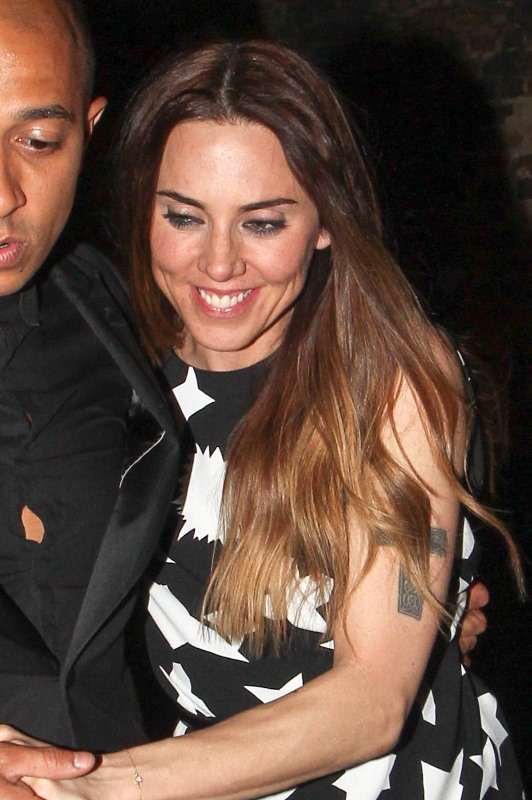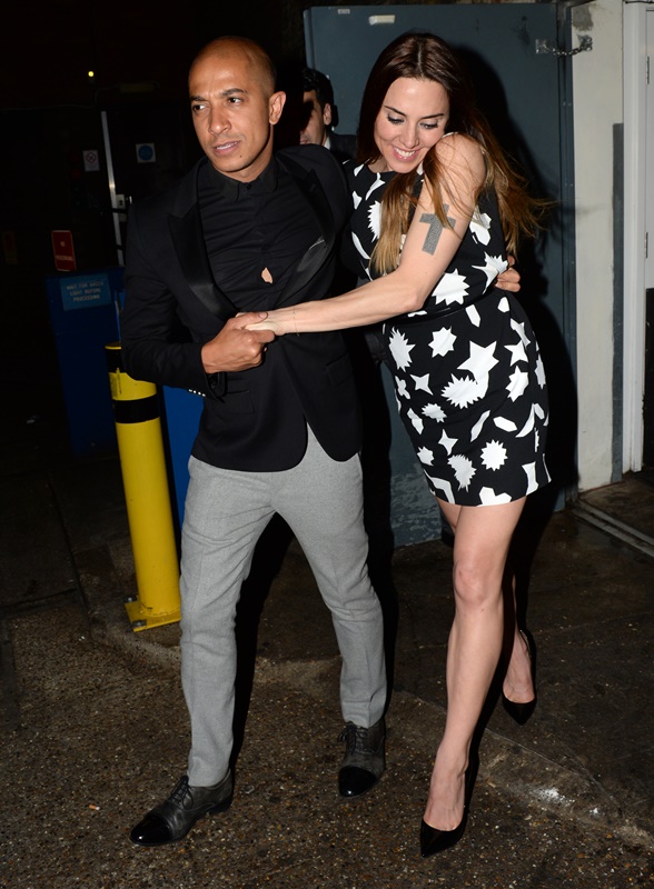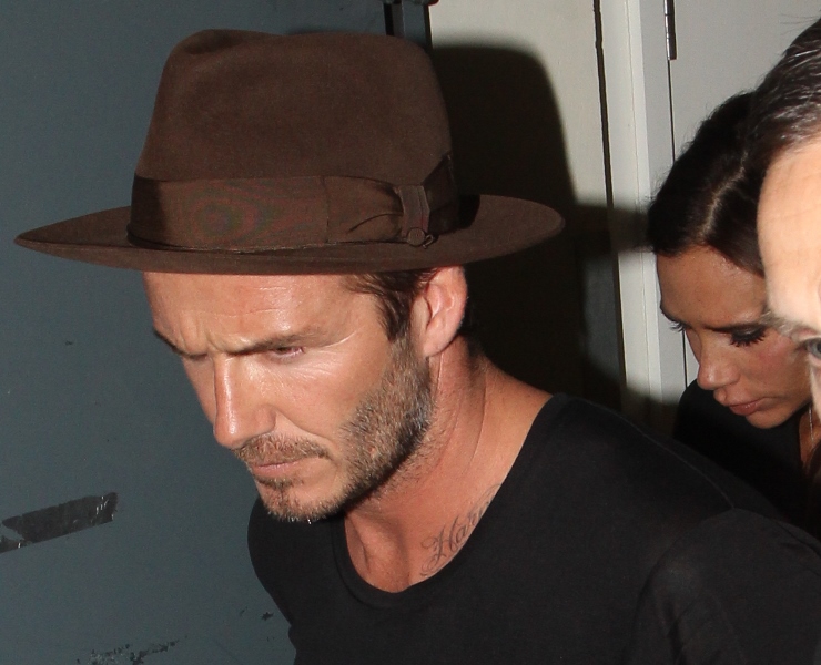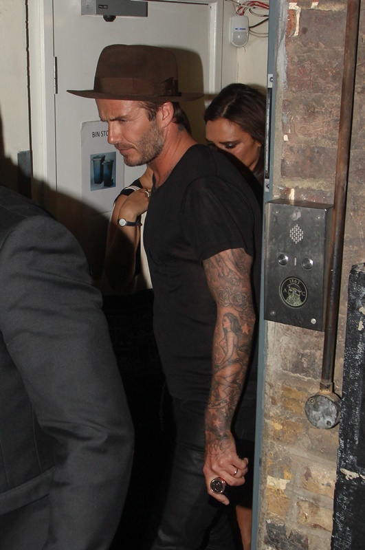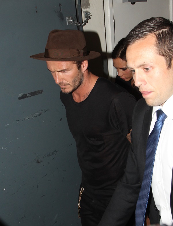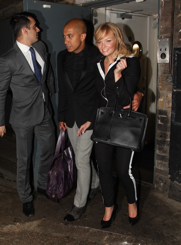 To celebrate her birthday milestone, Posh and Becks were in London last night for a party at the Arts Club. Three Spice Girls showed up as well – Emma Bunton, Mel C, and Geri Halliwell. Emma and Mel looked hosed as they were leaving. Does Posh ever get hosed? Or is it too many calories? I wouldn’t think it would take much. Like the way you feel a buzz after only one sip on an empty stomach.