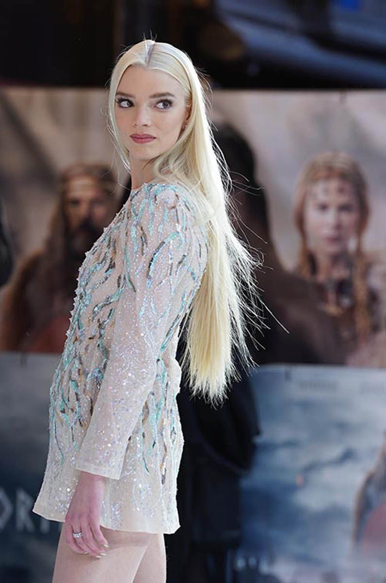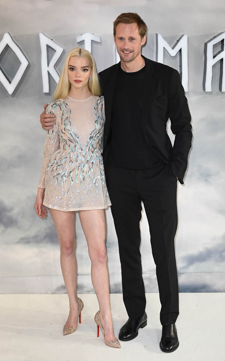 Anya Taylor-Joy is currently promoting The Northman. She was at the London premiere the other night with co-star Alexander Skarsgard and boyfriend Malcolm McRae. They recently made their first red carpet appearance together at the Vanity Fair Oscar party and are now following it up at one of her movies. Every time I see a photo of them I have a hard time distinguishing whether or not it’s them or like a fashion editorial or models on a runway as they both have that look about them.
