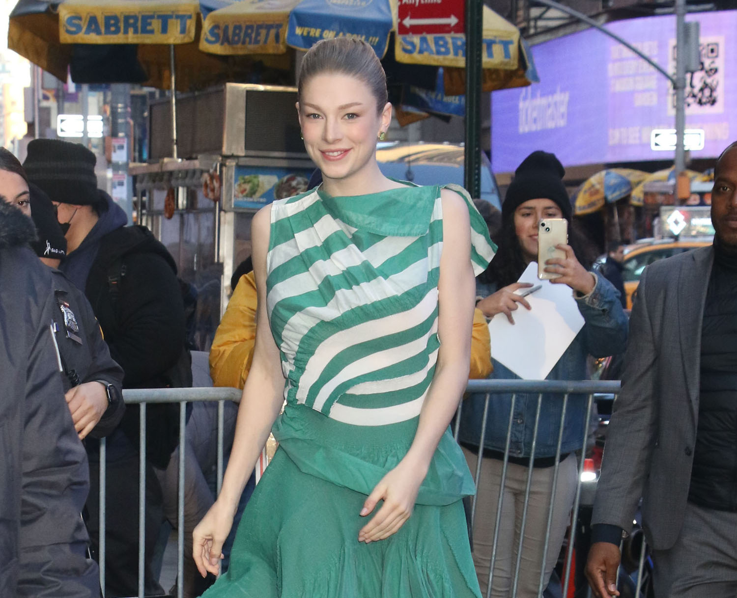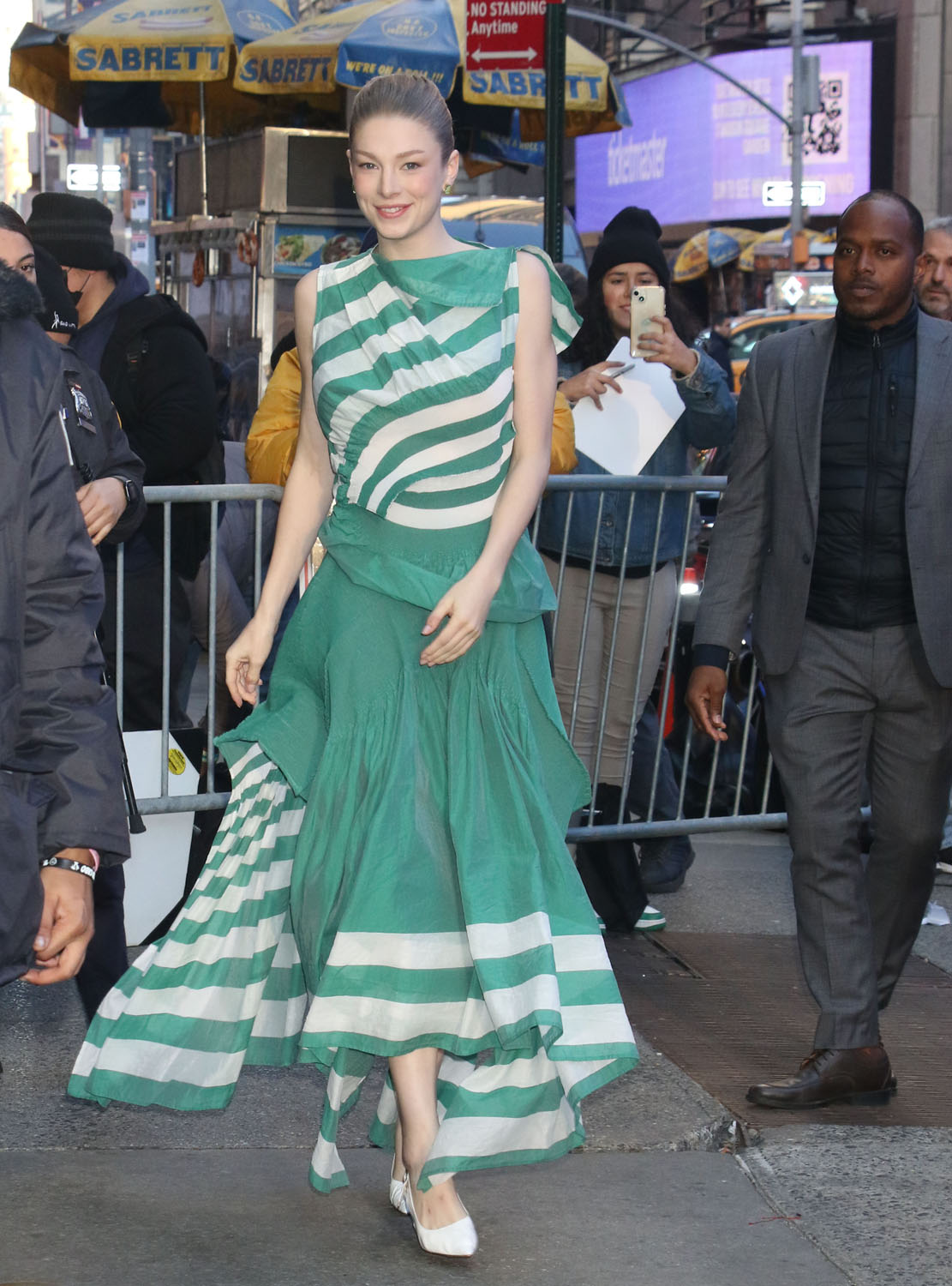 I gasped when I saw this dress on Hunter Schafer because as the Fug Girls say here… she is, indeed, absolutely nailing the Hunger Games press tour. This green and white look is delightful and it also works for her character in the movie, which is often when a promotional wardrobe becomes a memorable collection unto itself. But, and I’ll say it again, it’s really too bad that she’s underused in the film. (Go Fug Yourself)