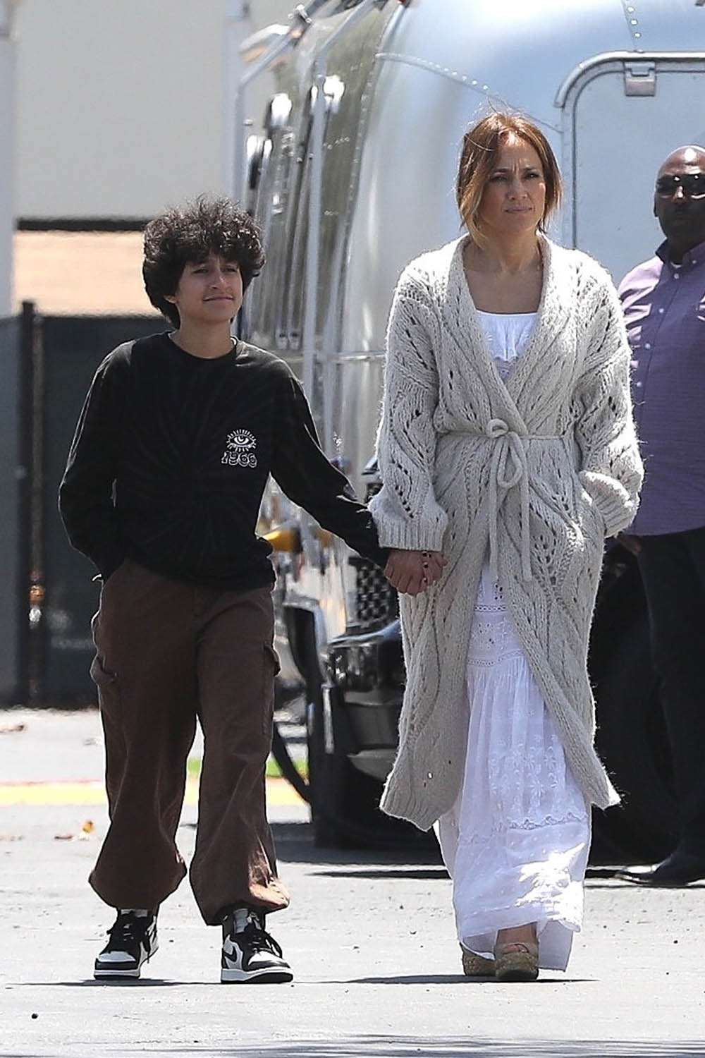 Attached – JLo and Emme were seen visiting Ben Affleck at work on the set of his Nike movie the day after the Dodgers gala. Ben was actually there backstage and we know this because she posted a tribute to him for Father’s Day on her social accounts.