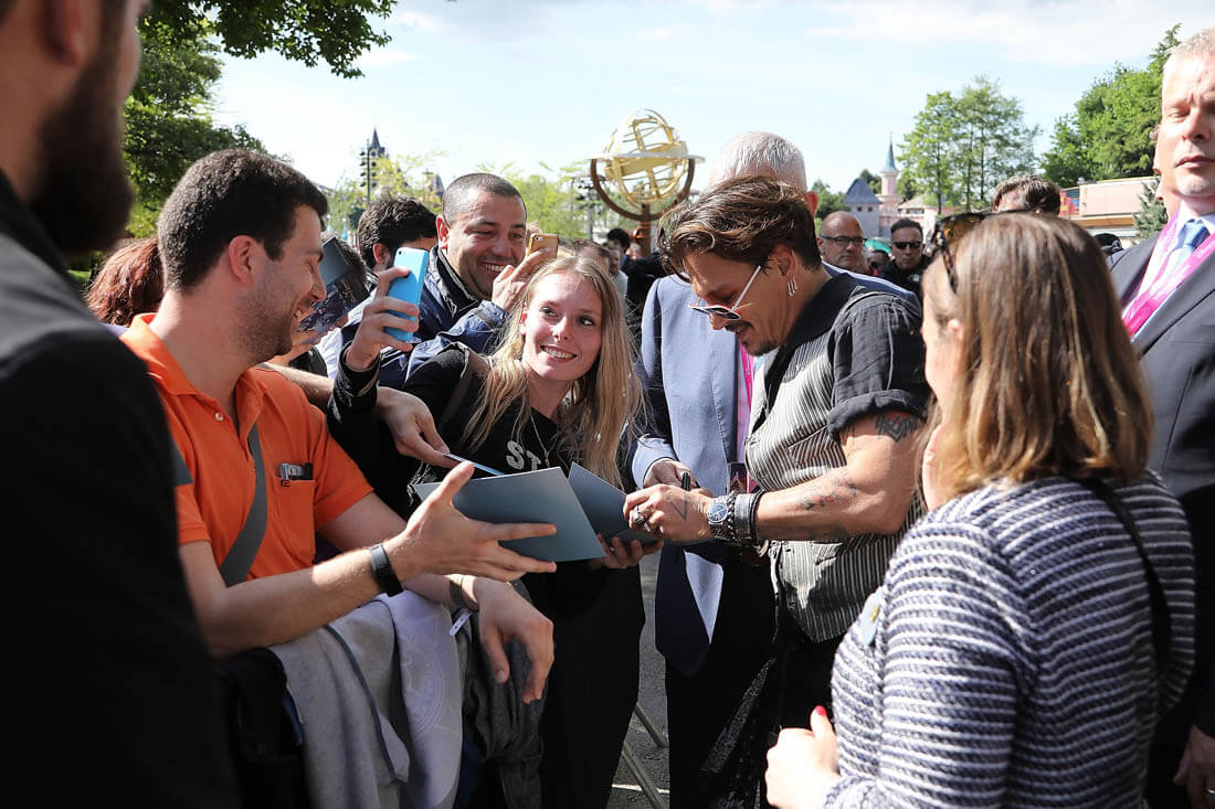 Here’s Johnny at Disney Paris with the rest of the cast of Pirates 5 with as big of a smile as we’ve seen from him in years. That’s all it takes then when you’re Johnny Depp. That’s how easy it is when you’re Johnny Depp.