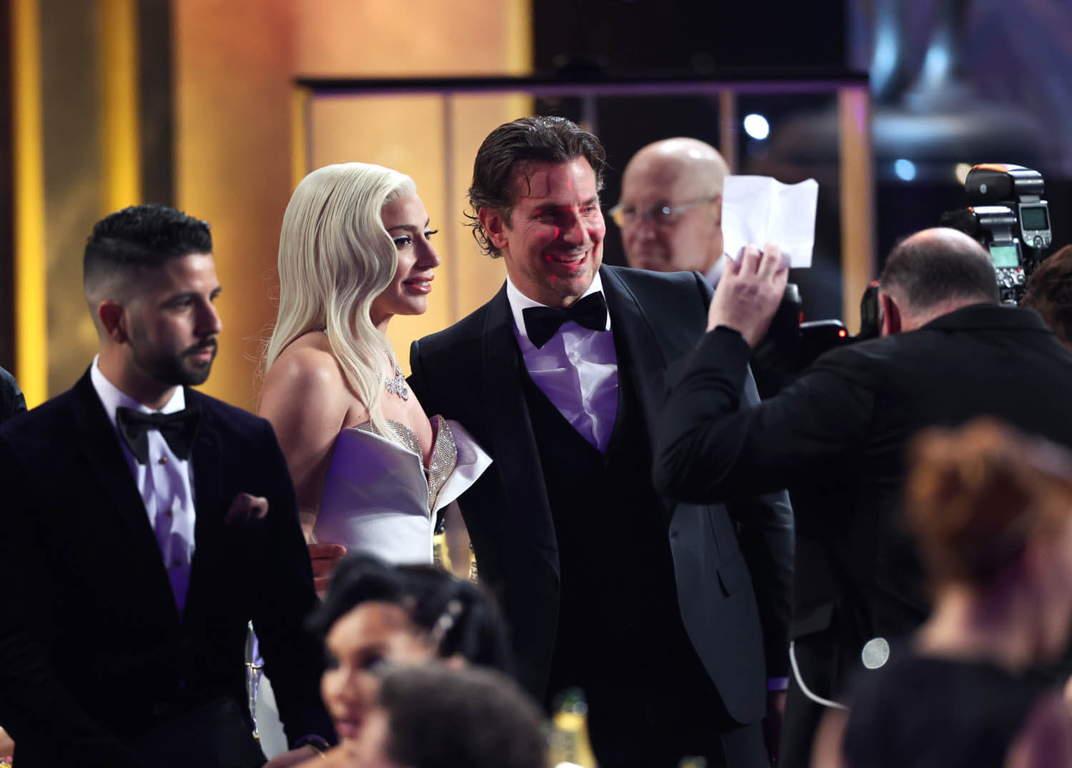 Two years ago at the Screen Actors Guild Awards, Brad Pitt and Jennifer Aniston greeted each other backstage and it broke the internet. Last night Lady Gaga and Bradley Cooper reunited at the SAGs and it wasn’t quite to that level but it’s still a major headline coming out of the show – the stars of A Star is Born, co-stars who did not give the shippers what they were desperately hoping for by becoming a real-life couple, were at least in the same room.