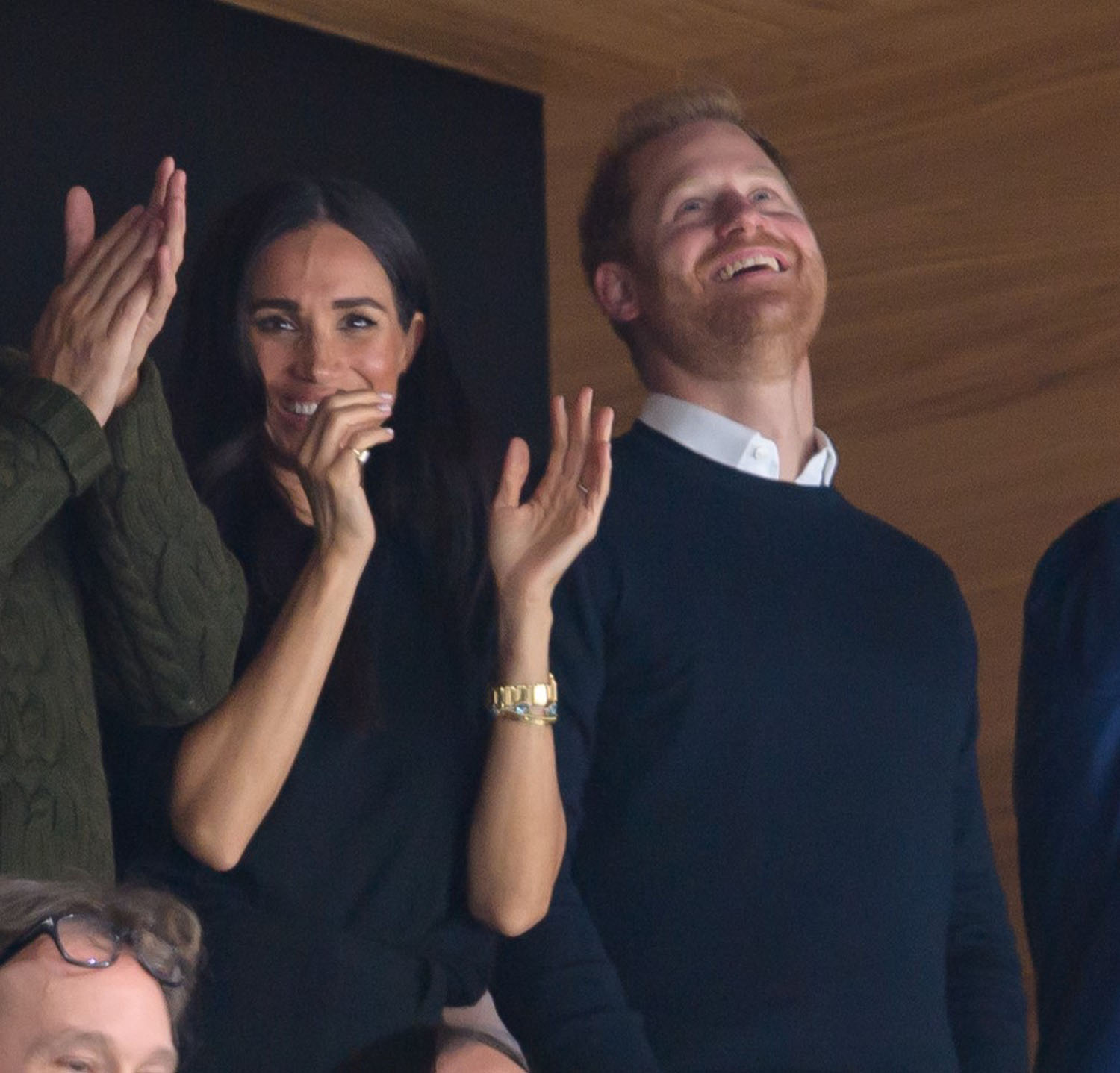 Harry and Meghan were coordinated in black for their appearance and they looked like they were having a great time. As you can imagine, there were a lot of cutaways, including this one after JT Miller’s insurance marker.