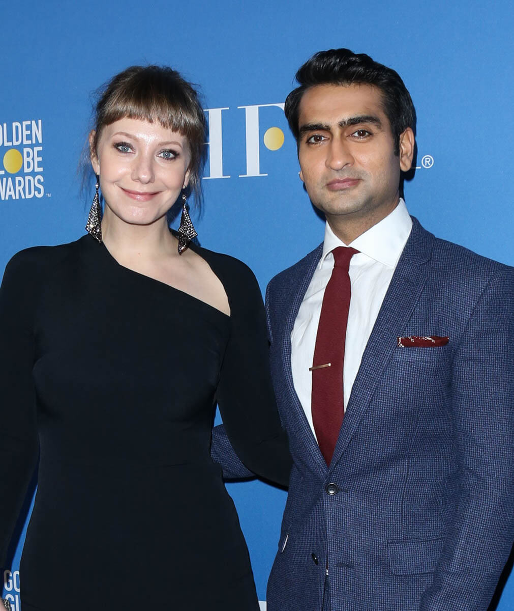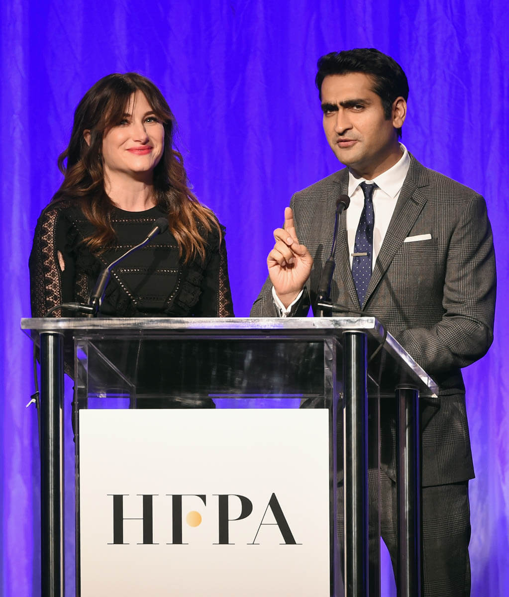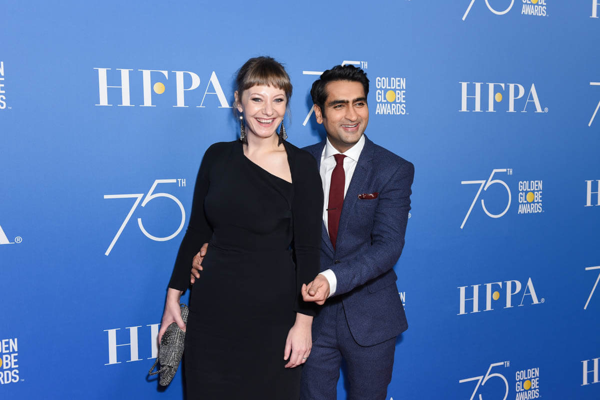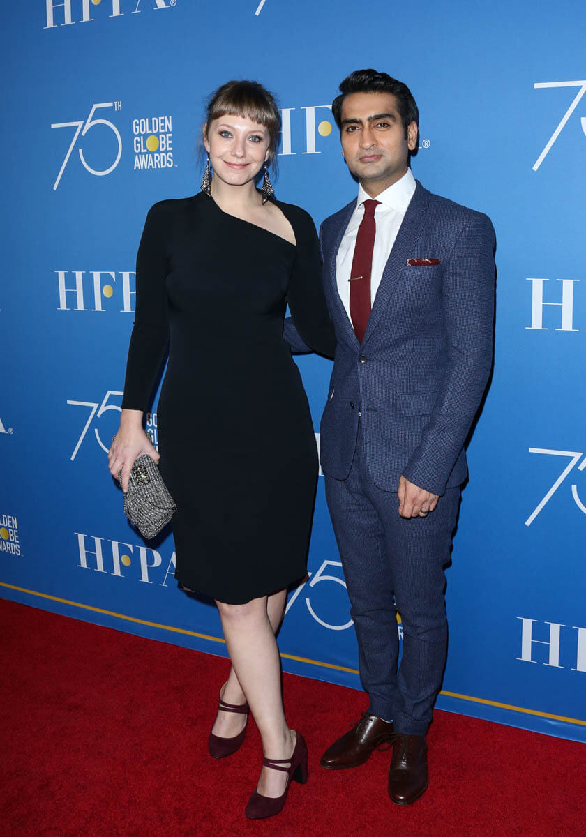 Here are Kumail Nanjiani and Emily V Gordon, just this past Friday, at the Hollywood Foreign Press Association’s holiday party and Golden Globes 75th anniversary event. They were also at an HFPA event back in November. And another one back in August. Which, in its own twisted way, is kind of hilarious. That the thirstiest awards association and the one known for the most ass-kissing might be all like, sorry The Big Sick, you were too thirsty. We’re more into Ansel Elgort and his dance moves. And also, teen girls love him.