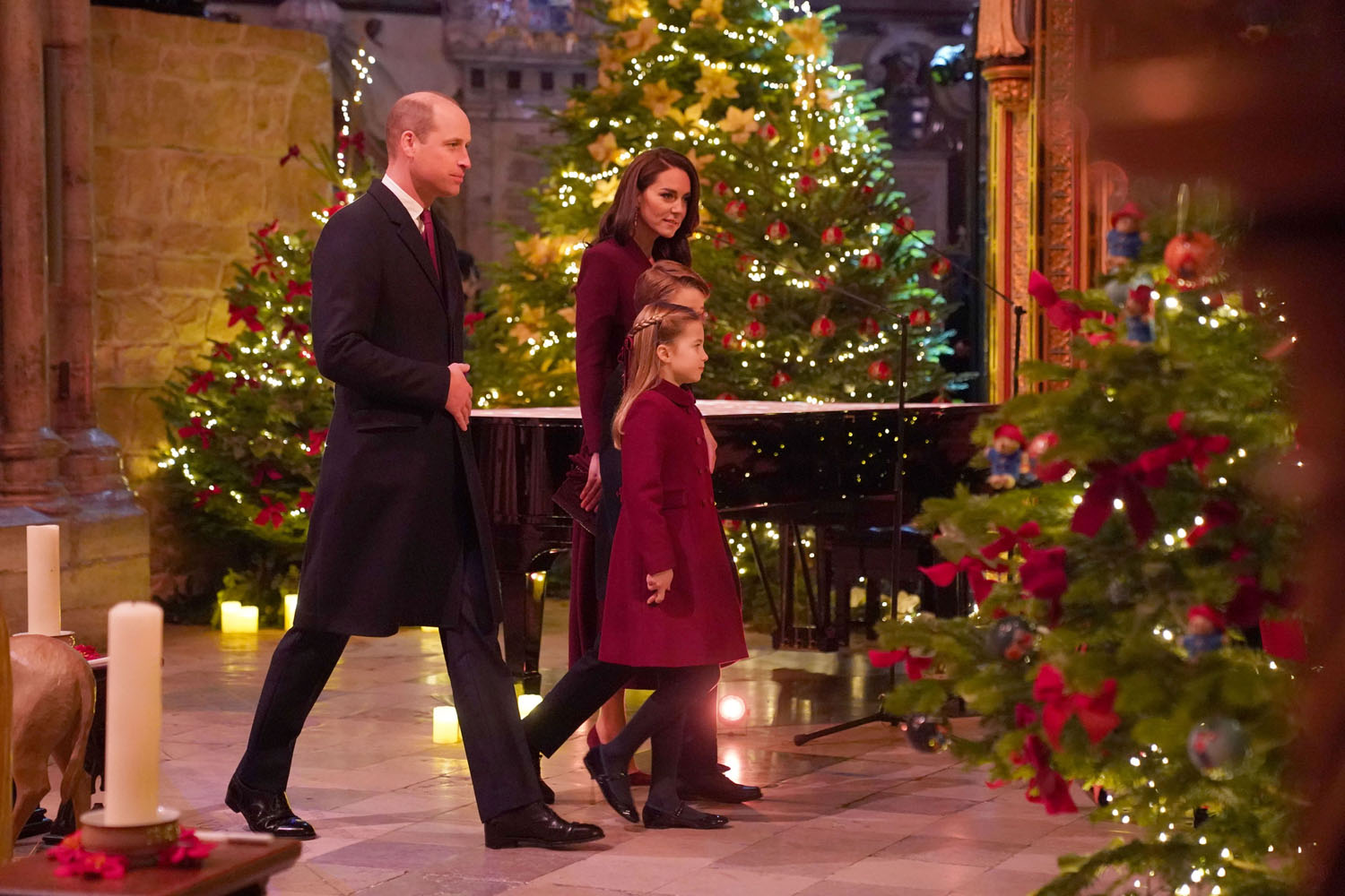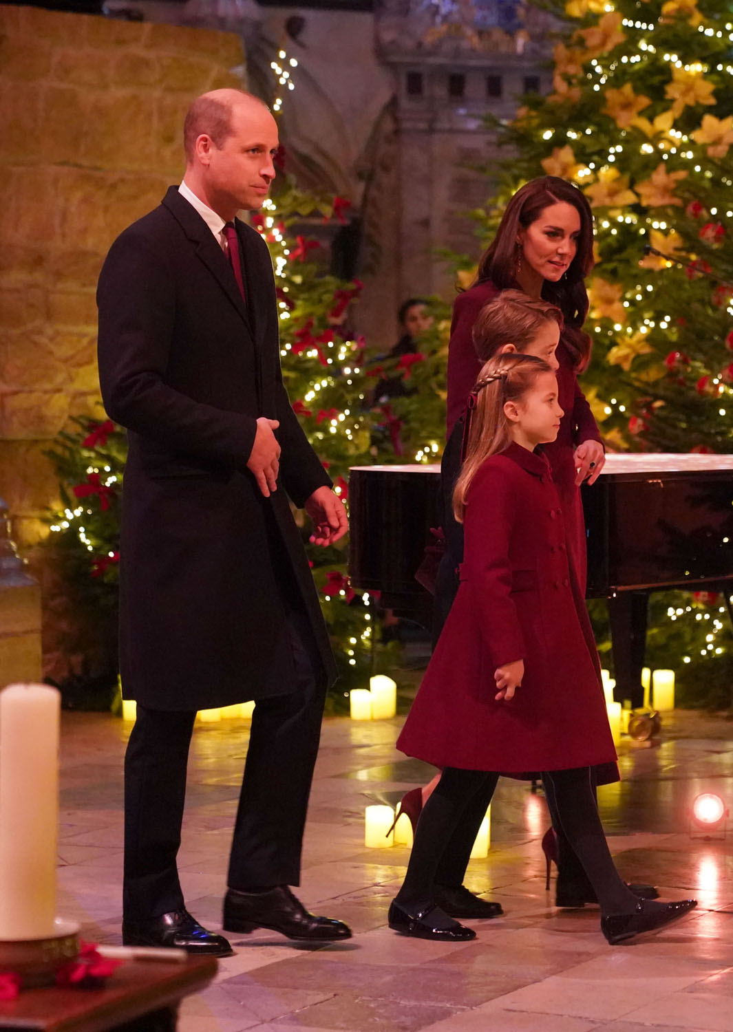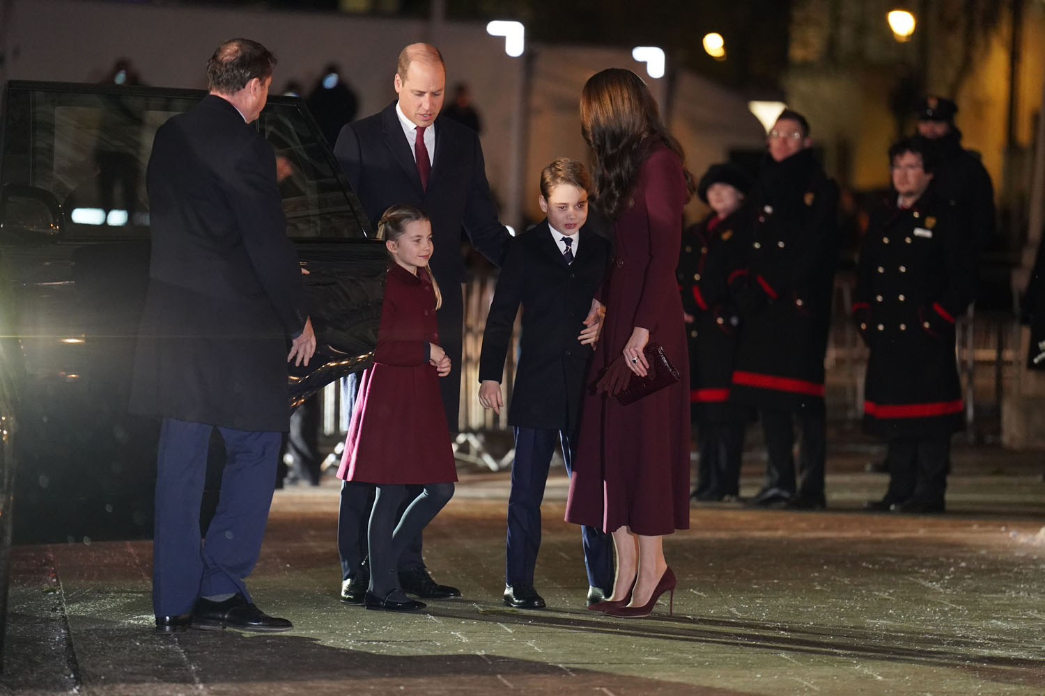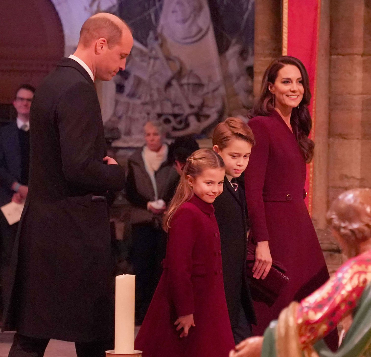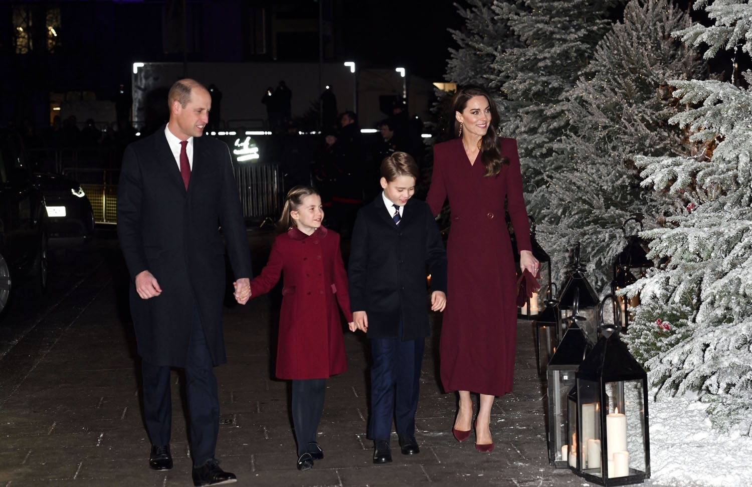 Attached - Will, Kate, Prince George, and Princess Charlotte attending Together at Christmas Carol Service yesterday at Westminster Abbey.