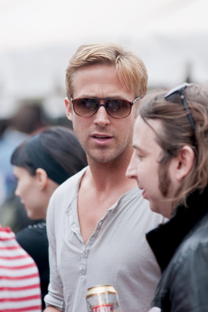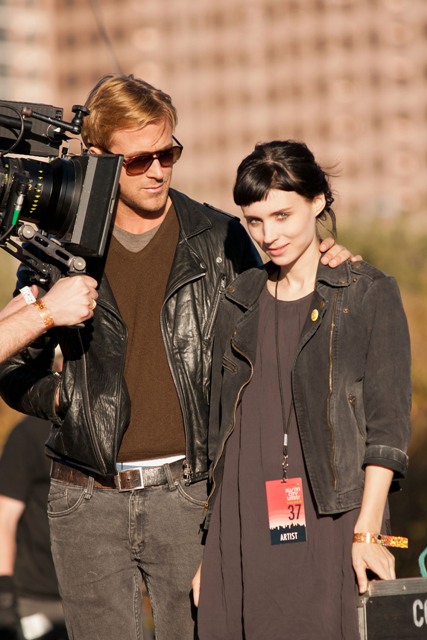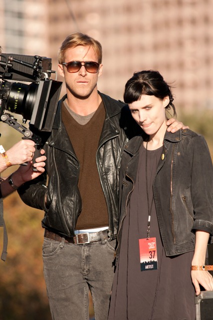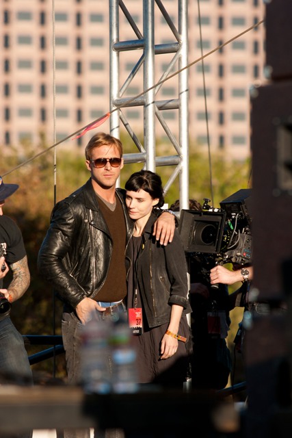 This is Ryan in Austin on Friday shooting Lawless with Rooney Mara. Lawless is a Terrence Malick movie. Ryan is the lead. Supporting cast in addition to the aforementioned Mara: Christian Bale and Cate Blanchett. Um, not bad. And obviously he couldn’t say no. Ryan revealed recently that acting is his first priority. He’s doing a lot of it.