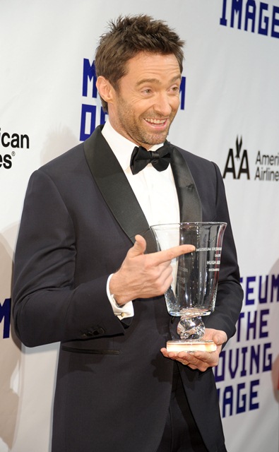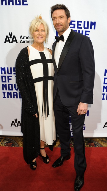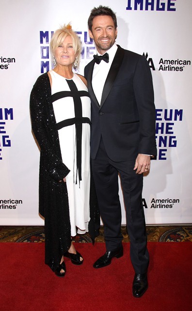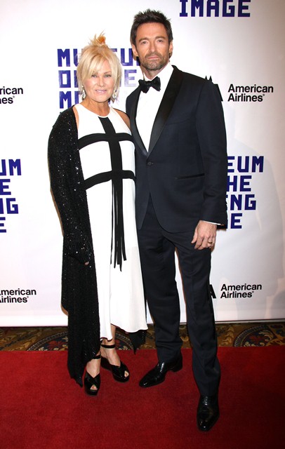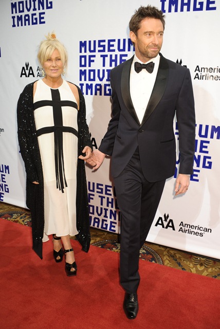 Attached - Hugh Jackman was honoured at the Museum Of Moving Images last night in New York. I really wish Deb had a better shoe stylist.