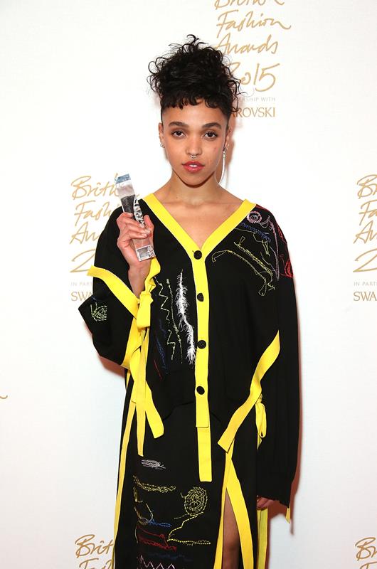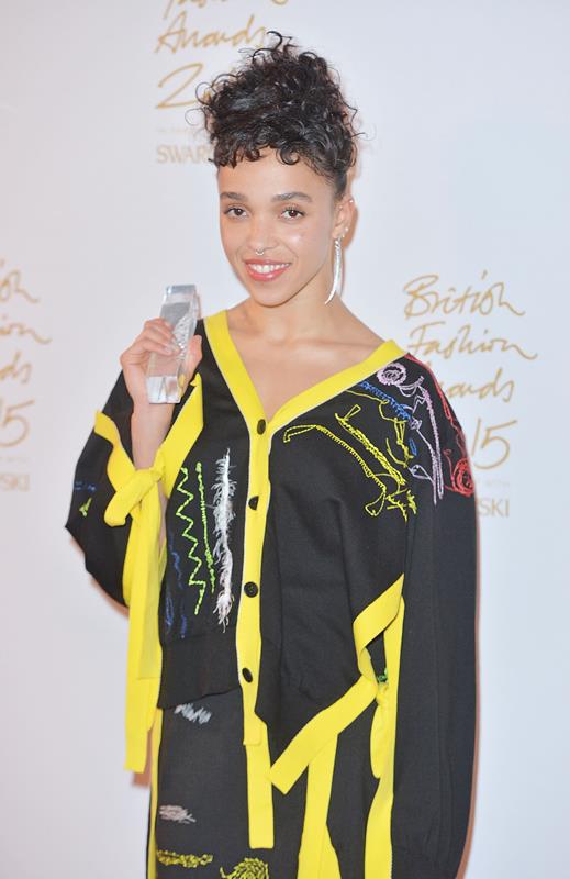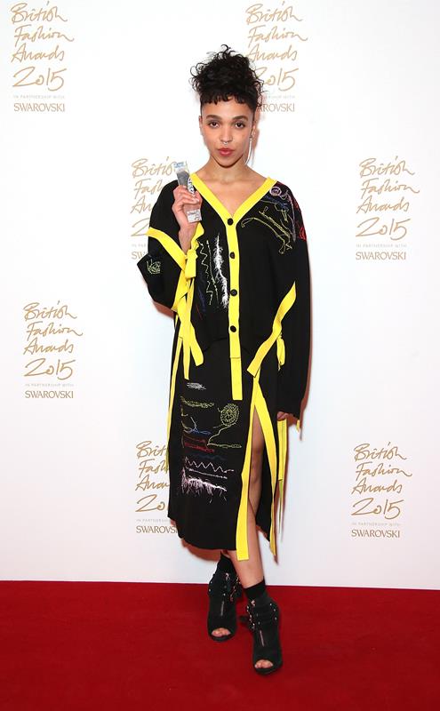 I really like FKA twigs's commitment to pant creativity. This all black jumpsuit would have been fine if it was just a dress but it's special now that you know it's pants on the bottom. And when you're going to collect a British Fashion Award, this is the kind of edge that suits the event.