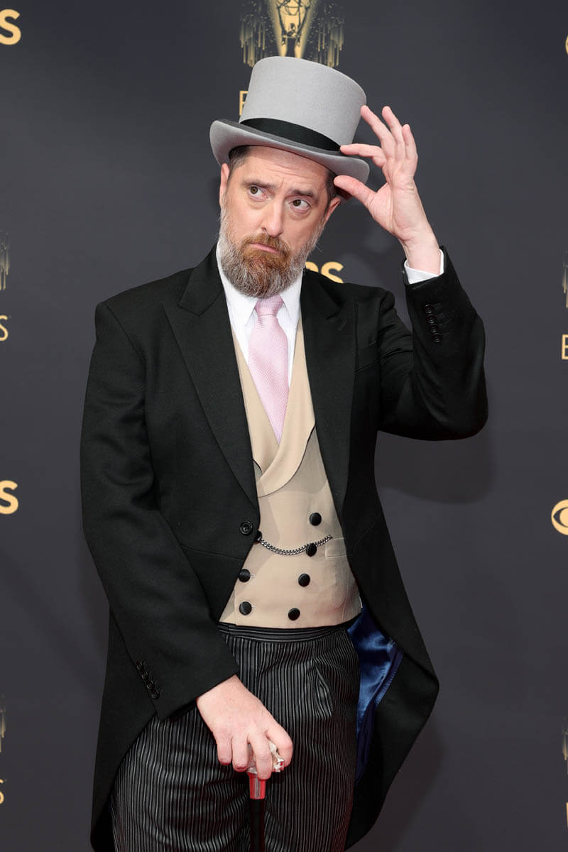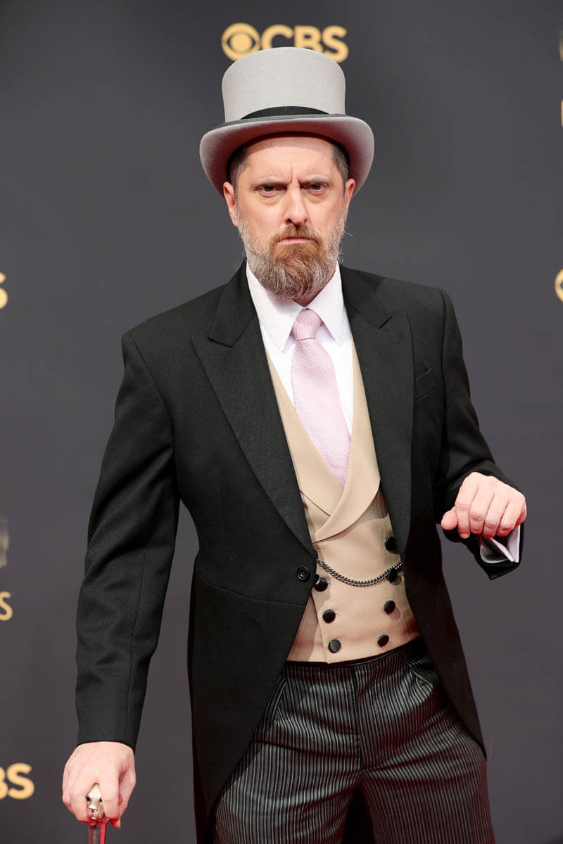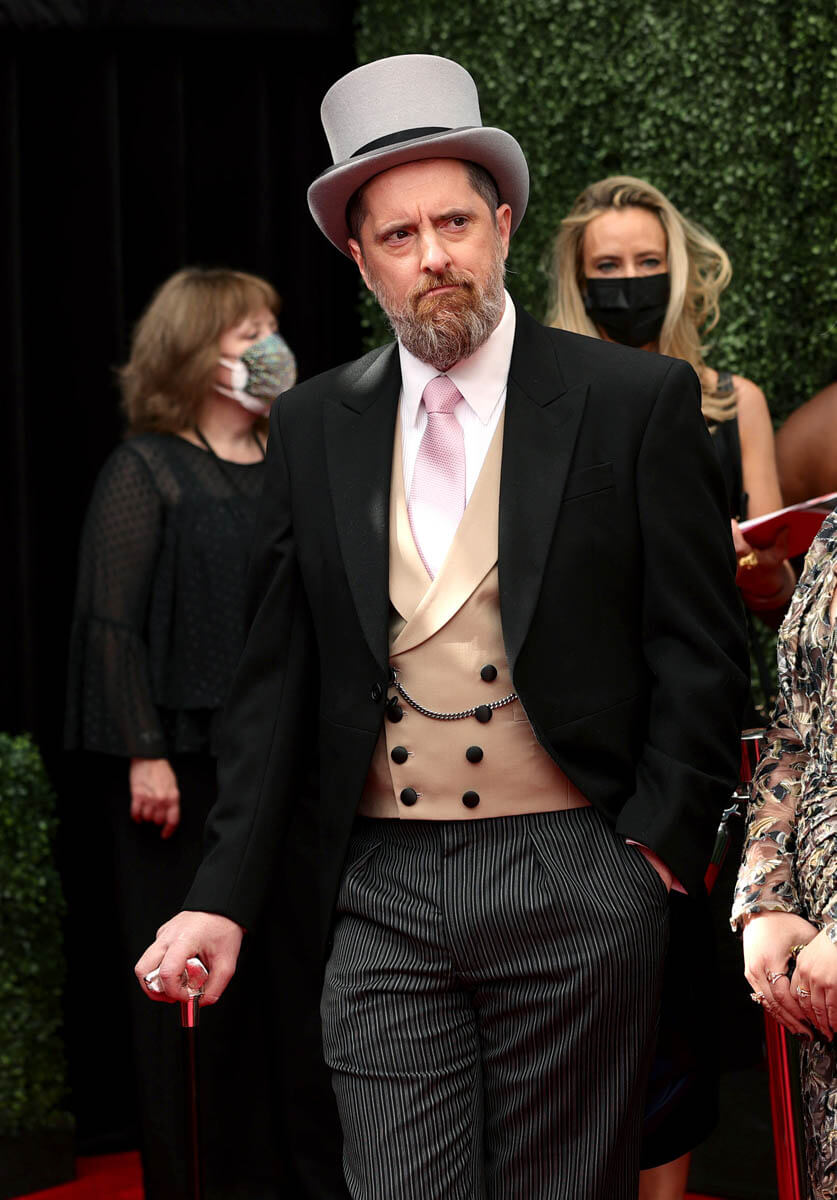 Then there is Ted Lasso star and co-creator Brendan Hunt going full Mr. Monopoly. I don’t know who made this suit, but it looks like he unpacked it from a steamer trunk raised from the Titanic! This man has been to a dinner party where a guest was murdered, and everyone is a suspect, and he might have done it! He’s even working a red-carpet scowl like an 1890s robber baron! Coach Beard is going through some sh-t!