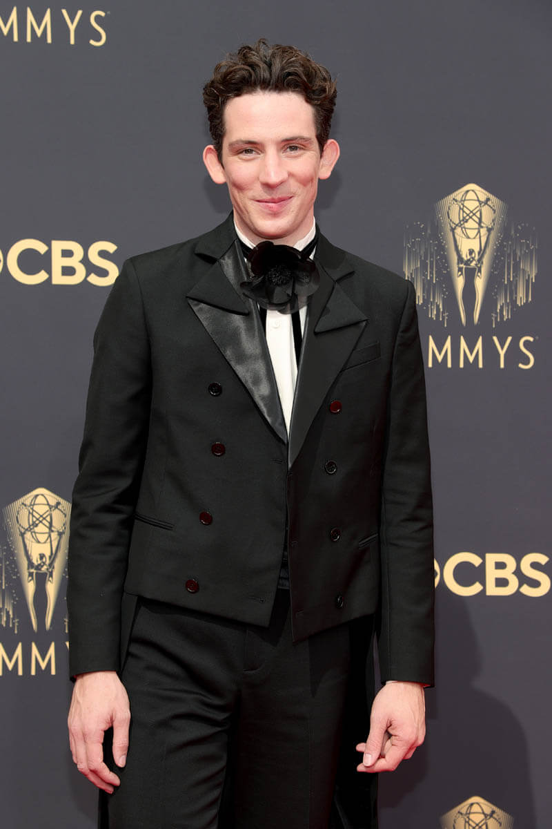 Next, we have The Crown star and newly minted Emmy winner Josh O’Connor in a suit by Loewe. He looks like an adult man dressing like a little boy going to a wedding! Is Josh O’Connor really just three boys in a suit, pretending to be an adult? I didn’t think so before but now I have my suspicions!