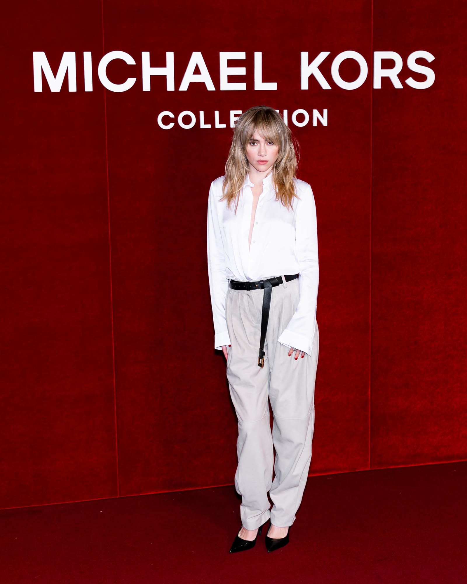 Meanwhile, Suki Waterhouse turned up dressed like a movie costume designer’s idea of an officer worker: