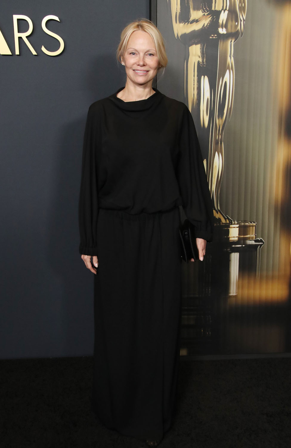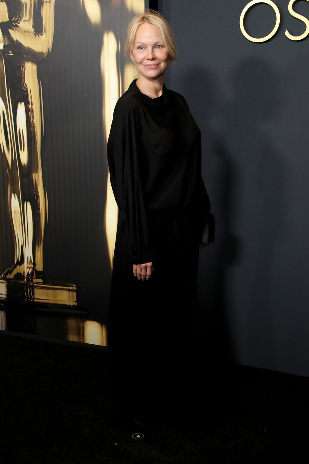 Also sporting a nude lip is Pamela Anderson, to go with her now trademark no makeup look. (I find it a little disingenuous to call this “no makeup” when there is obviously some makeup, but it’s definitely a much lighter, more neutral application.) I am still rooting hard for her and The Last Showgirl, but like JLo, she remains a very long shot. So far, the Oscars establishment is not taking her seriously, but The Last Showgirl hits theaters next month, let’s see if that changes at all once her film is available for more people to see.