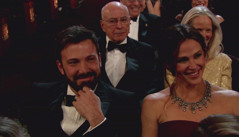 He was tense to start the evening, though. I mean, it’s never for sure until it’s for sure. And it doesn’t help when the host conjures JLO’s bare ass in your face and references Gigli, and reminds you that the Academy forgot. Check out Ben’s reaction: