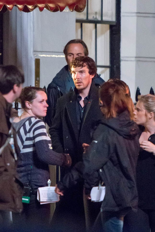 The batsh*t insane Cumhards are probably disappointed to see Amanda Abbington is still on set, though. There are the Cumhards who think that Cumberbatch has a fake baby, and then there are the Sherlock fans who send Abbington death threats for playing a character written by a guy who’s been dead for over eighty years. (Lest you think this is old behavior, it’s not. It still happens.) What I want to know is if those people and the fake baby people have any crossover. And if so, what do their meetings look like? Is it just a monthly bunny boil?