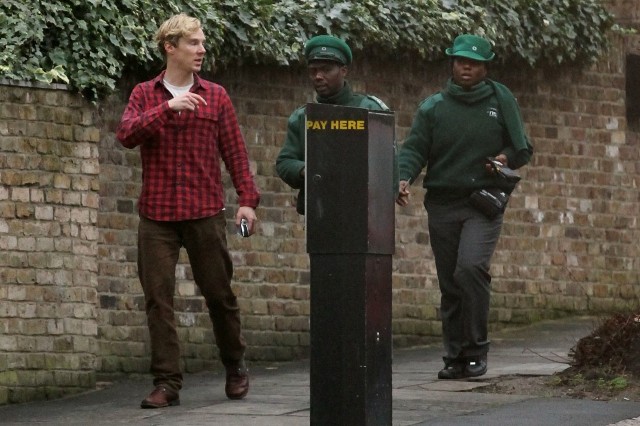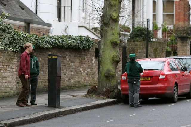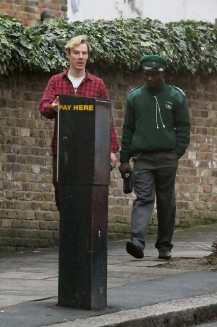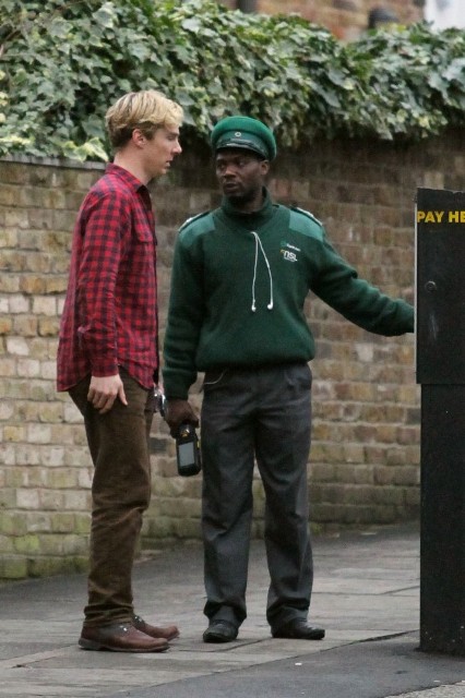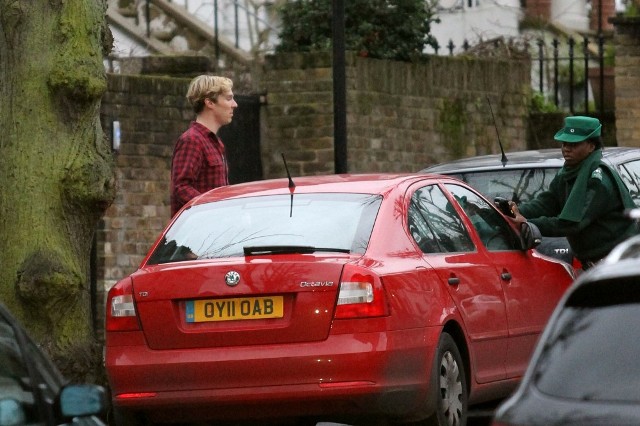 (Lainey: he doesn’t photograph well. EVER. Here’s Cumby getting  parking ticket in London last week. He was at Carluccio’s - buffalo mozzarella!!! - reading through a script - maybe Star Trek? - and four parking wardens attacked his car.)