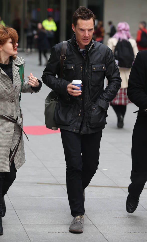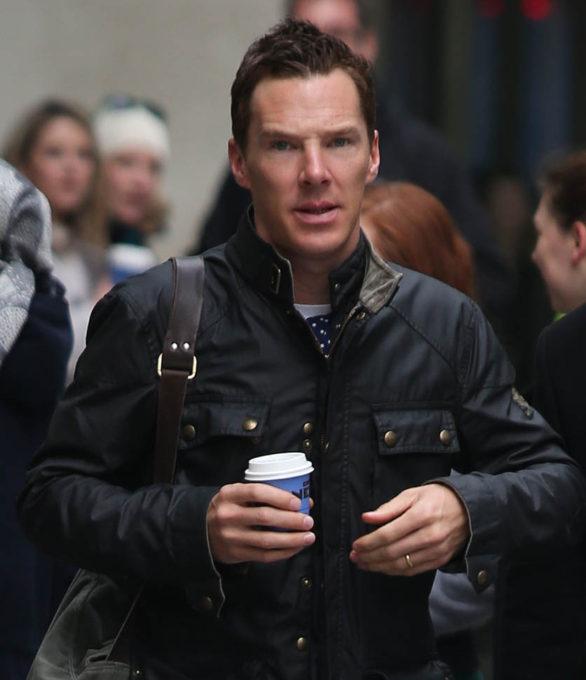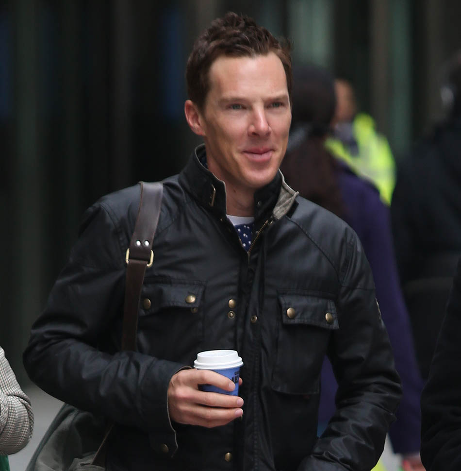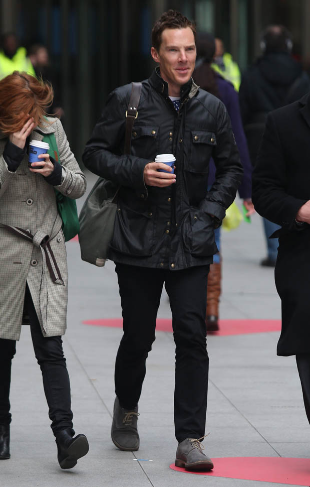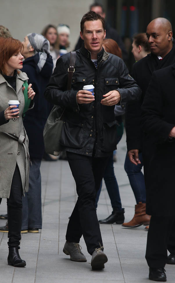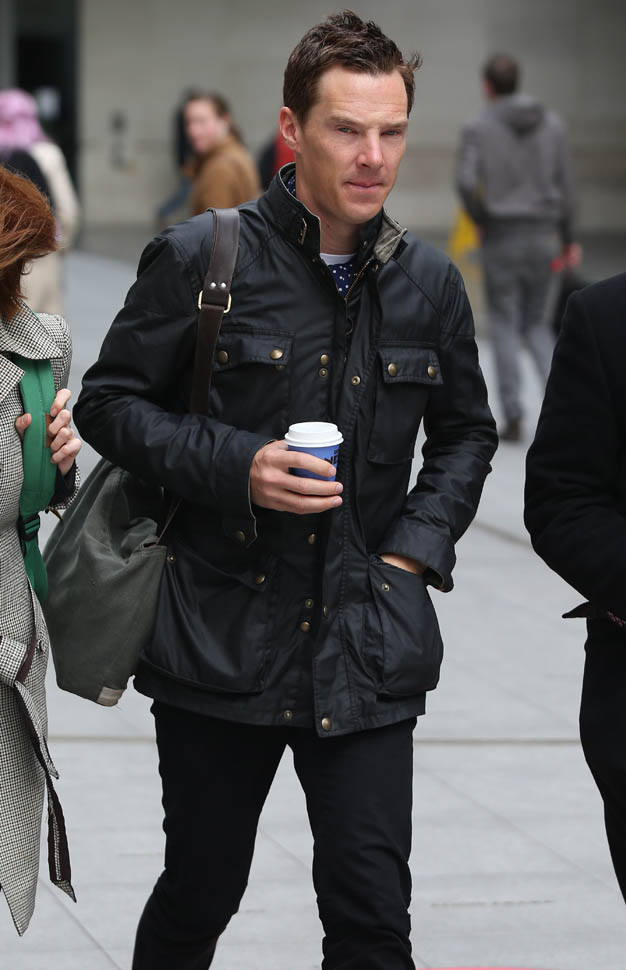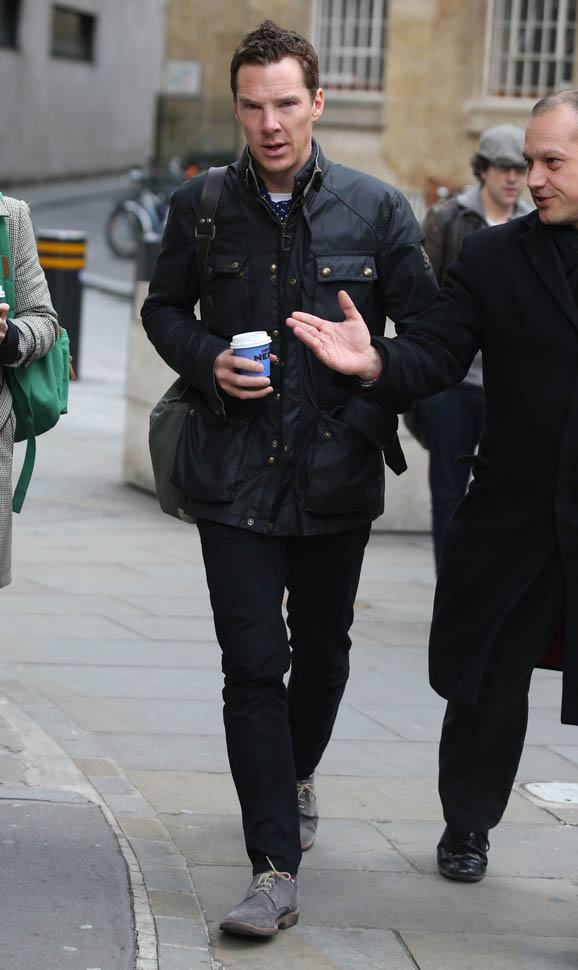 Check him out yesterday in London wearing his hair shorter. I like this. A lot. So much better. When you have a name like Benedict Cumberbatch and your hair is the way he used to have it, the poncy ass image is a lot easier to believe. Especially the way he dresses often, in privileged lounge wear.