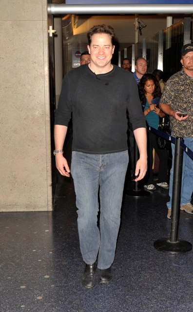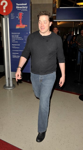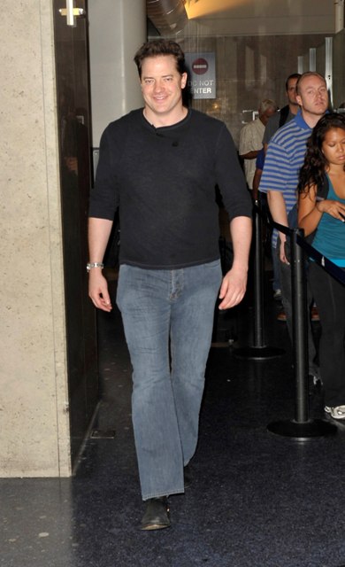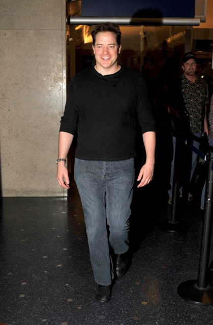 Last week I posited that Gerry’s pants were the most embarrassing in the business. That was before Brendan arrived at LAX looking like this. His are the mature version of Robert Pattinson’s mothering hips. Look out Twi-Hards. Once upon a time, Brendan Fraser was a heartthrob too.
