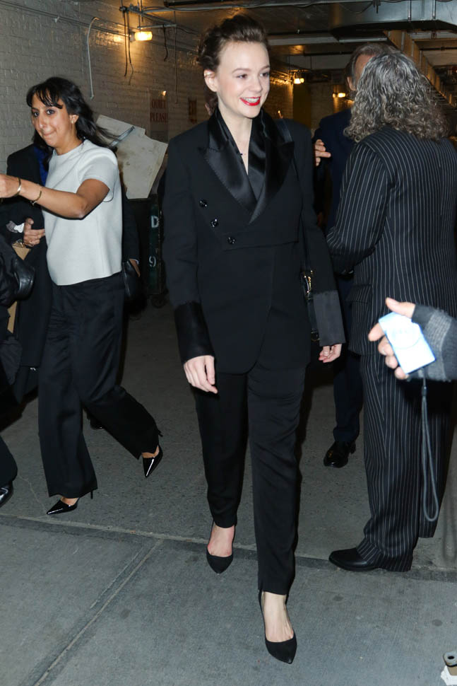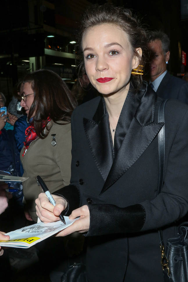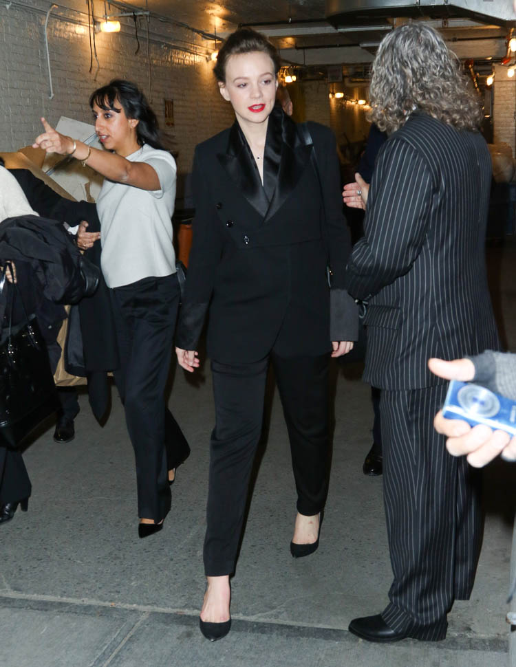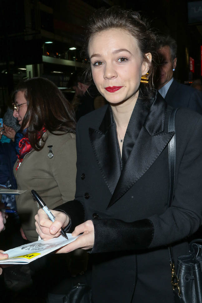Attached - Carey exiting the opening night of Skylight in New York earlier this month.