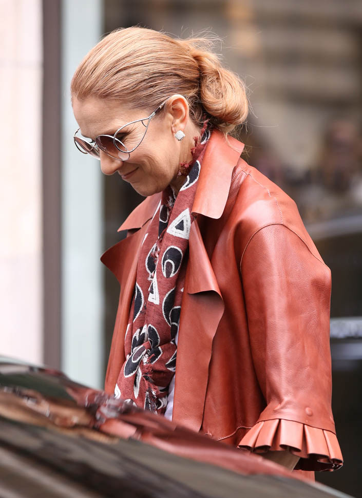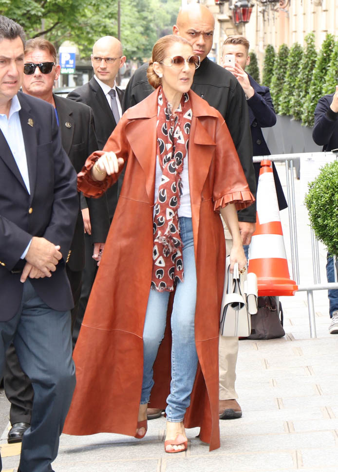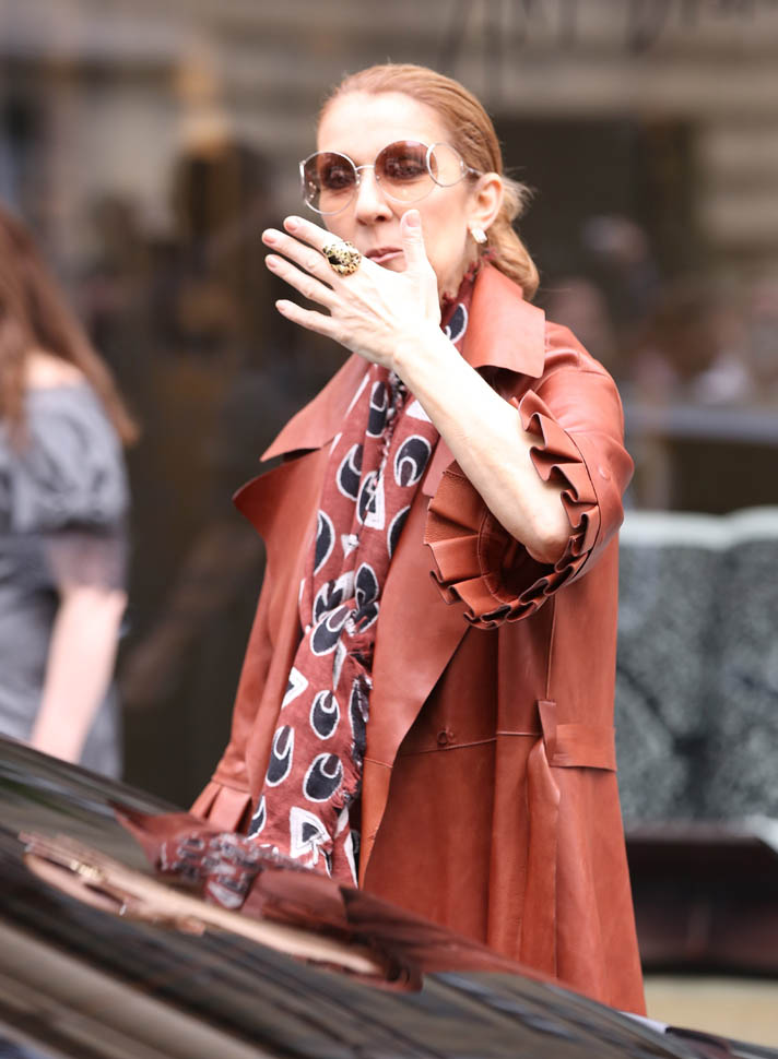 Super luxe. Well, obviously, because it’s Celine Dion we’re dealing with here. Celine doesn’t do high-low. She only does high-high. And this leather trench has to be mega high. High like the price of a car. Look at the exquisite detail in how the sleeves are cuffed.