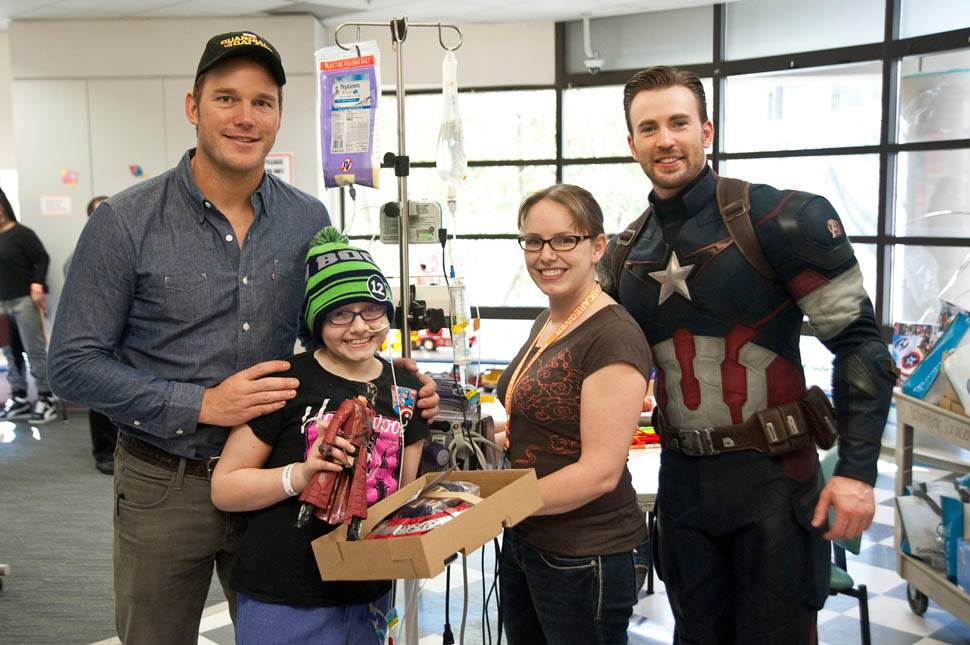 Chris Evans and Chris Pratt made a Super Bowl bet that the loser would have to dress in his superhero costume and visit sick kids in the winner’s city. Since Evans’s Patriots won, Pratt made good and visited kids in Boston dressed as Star-Lord. But as I mentioned when this bet was first made, when you’re a superhero, you can’t punk out on kids. To that end, Evans donned his Captain America costume and visited kids at Seattle Children’s Hospital over the weekend. Everyone wins.